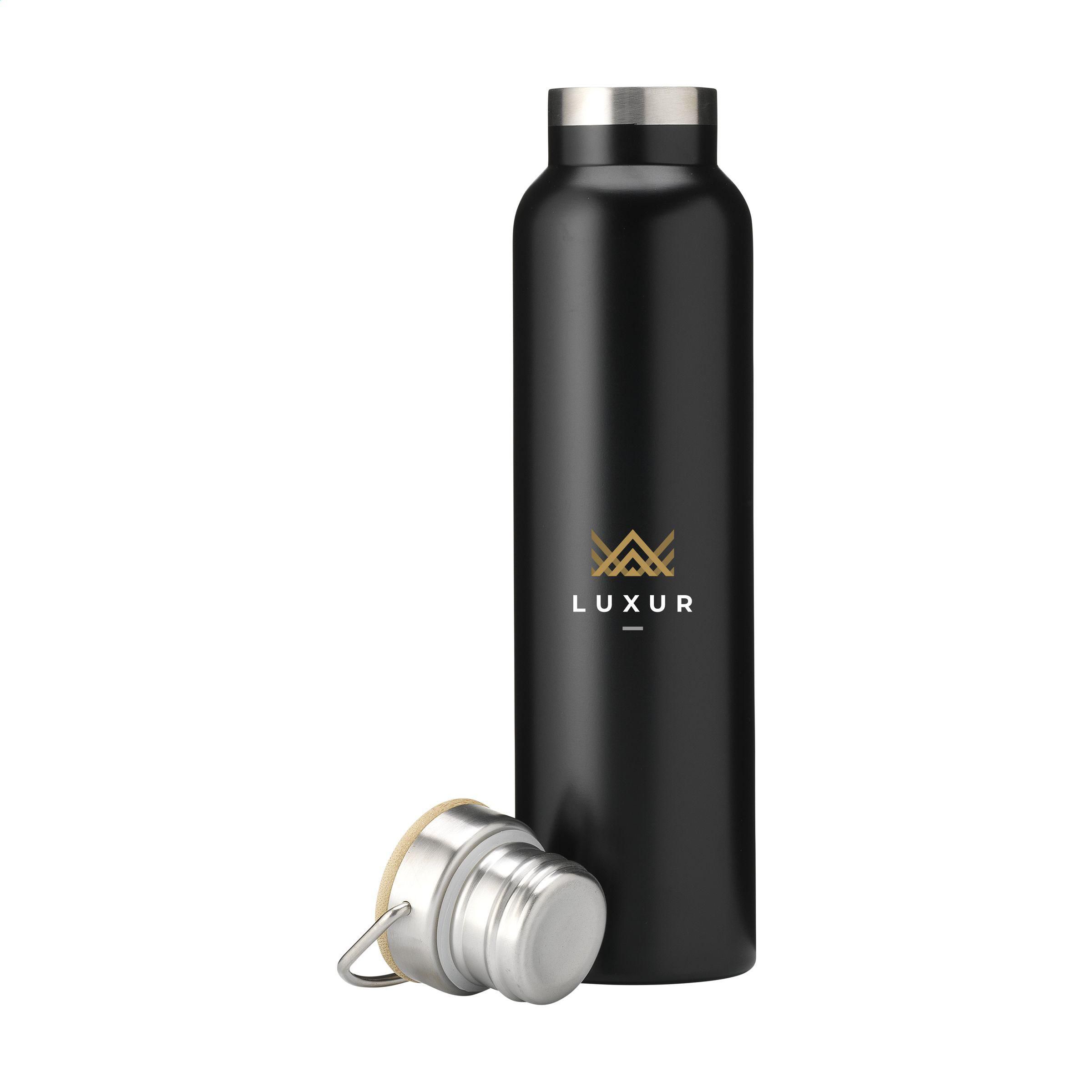 Doppelwandige, auslaufsichere Wasserflasche/Thermoflasche aus recyceltem Edelstahl. Vakuumisoliert. Der praktische Schraubverschluss ist eine Kombination aus Edelstahl und Bambus. Geeignet zur Temperaturerhaltung von kalten oder heißen Getränken. Entwurf basiert auf der Vintage-Milchflasche aus Glas. Nicht spülmaschinengeeignet. RCS-zertifiziert. Gesamtes recyceltes Material: 82%. Fassungsvermögen 750 ml. Edelstahl kann viele Male recycelt werden – die Qualität des Materials bleibt dabei weitgehend erhalten. Durch die Verwendung von recyceltem Edelstahl kommt eine geringere Menge an neuen Rohstoffen zum Einsatz. Das bedeutet weniger Energieverbrauch und weniger Wasserverbrauch.
