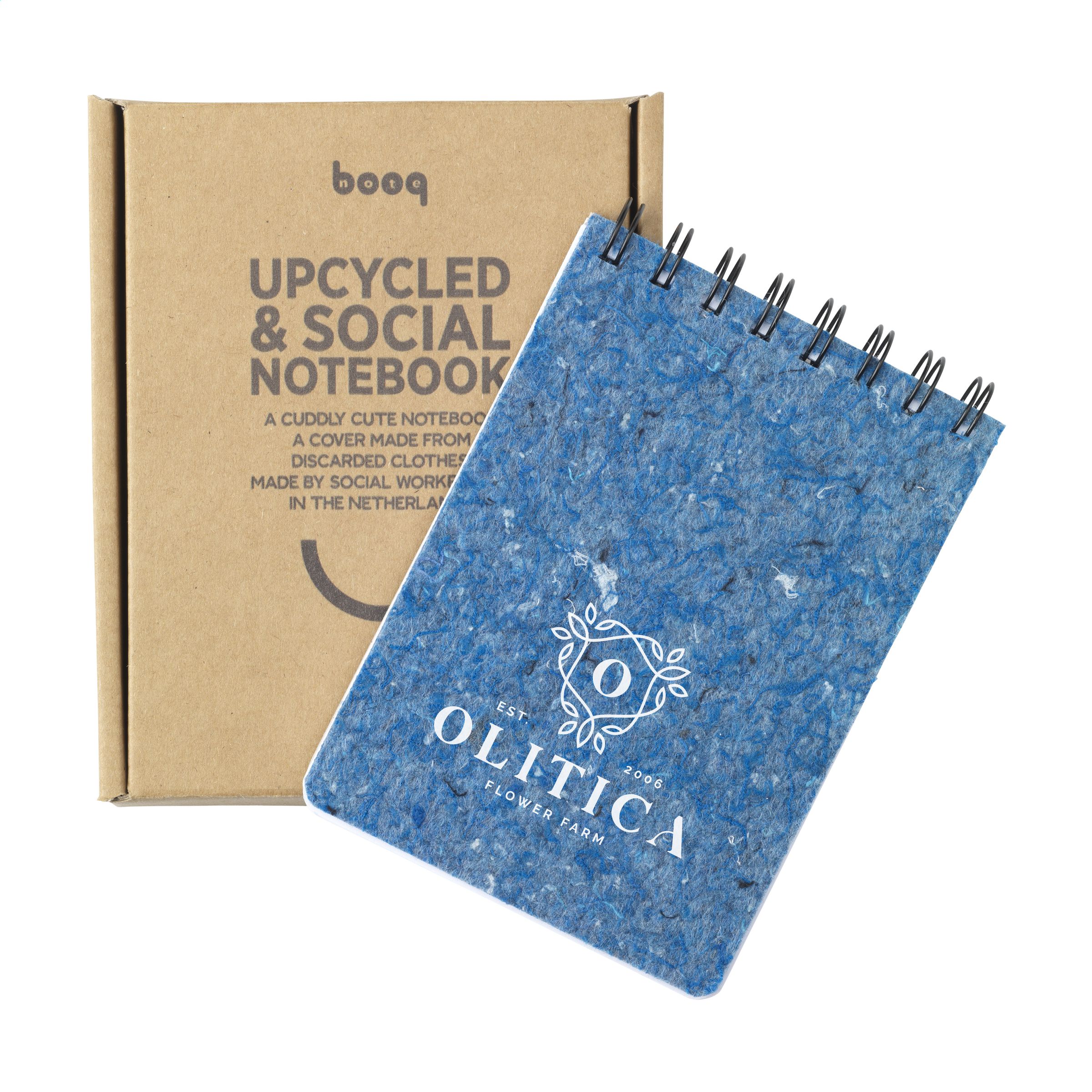 WoW! A6-Notizbuch mit Spiralbindung, ca. 96 Blatt/192 Seiten liniertem, holzfreiem Offset-Papier (90 g / m²) und Umschlag aus upgecycelten Textilien. Alte Textilien werden gesammelt und zu Filz verarbeitet. Filz ist ein Vliesstoff, der durch Komprimieren der Fasern mit Hitze, Feuchtigkeit und Druck hergestellt wird. Bei sozialen Arbeitsplätzen werden die laserschneiden die Blätter und befestigen sie an den Notizbüchern. Die Mitarbeiter der sozialen Einrichtungen schneiden die Blätter mit dem Laser aus und befestigen sie an den Notizbüchern. In diesem Notizbuch können Sie alle Ihre Ideen notieren. Optional: Einzeln in einem Kraftkarton geliefert.