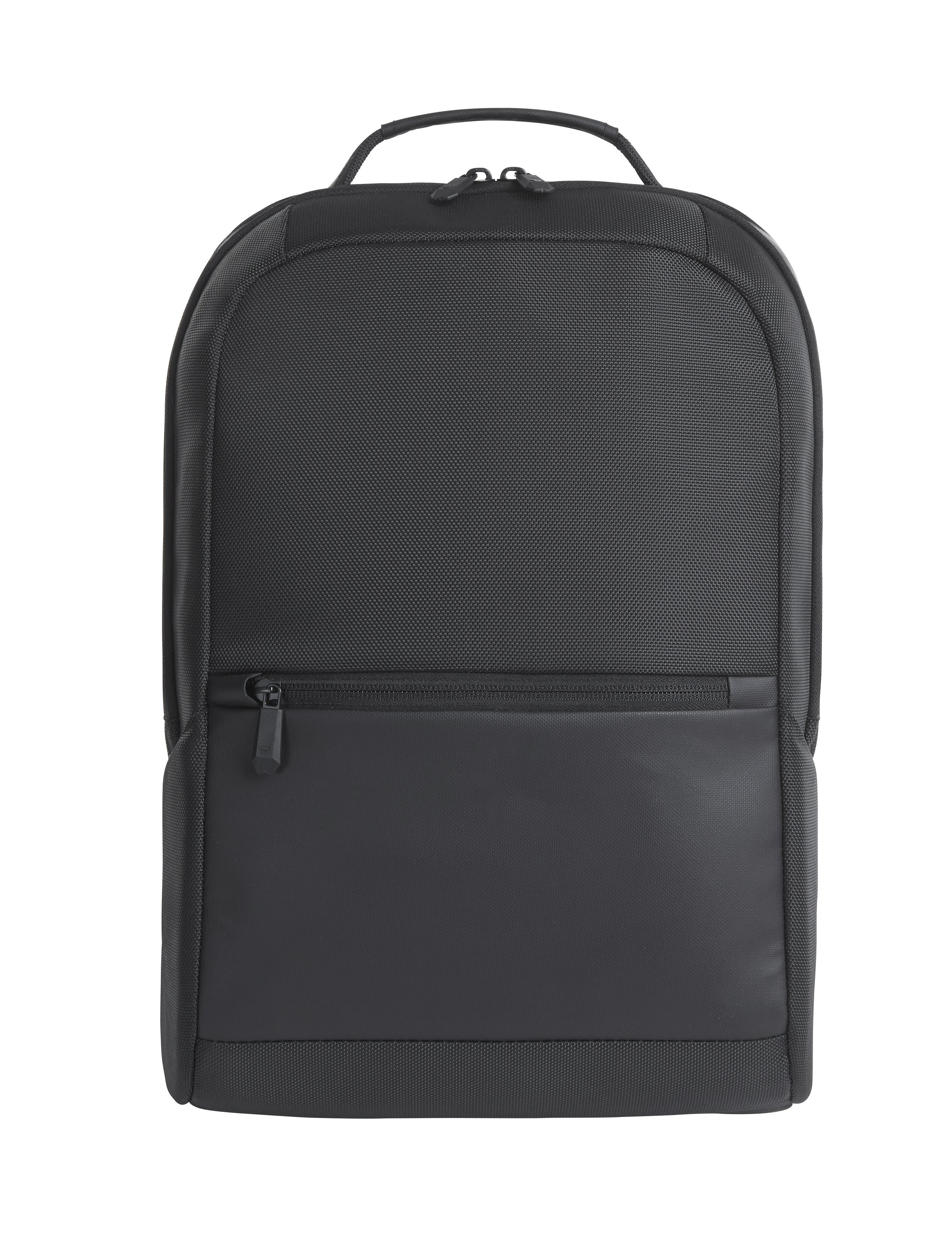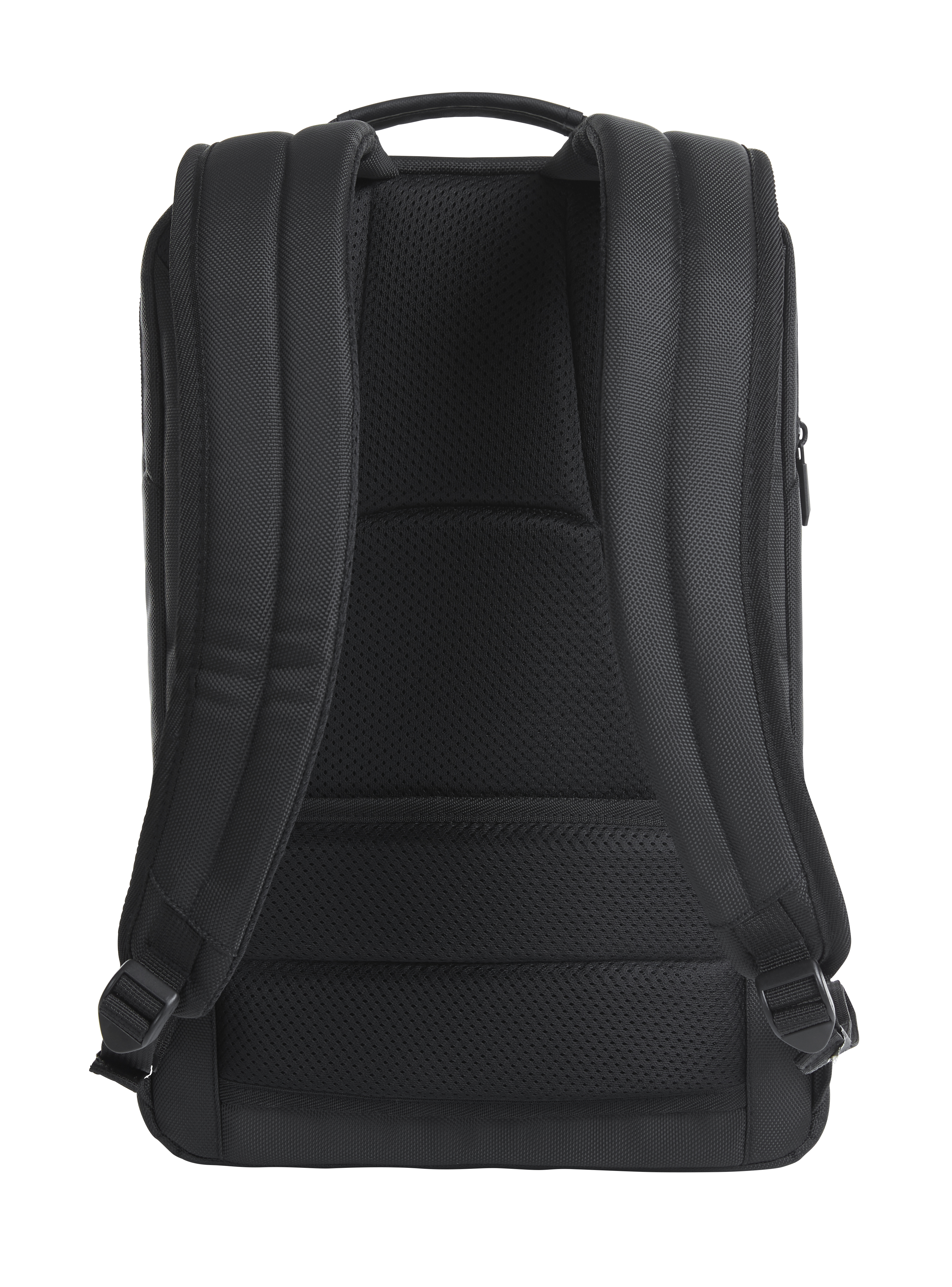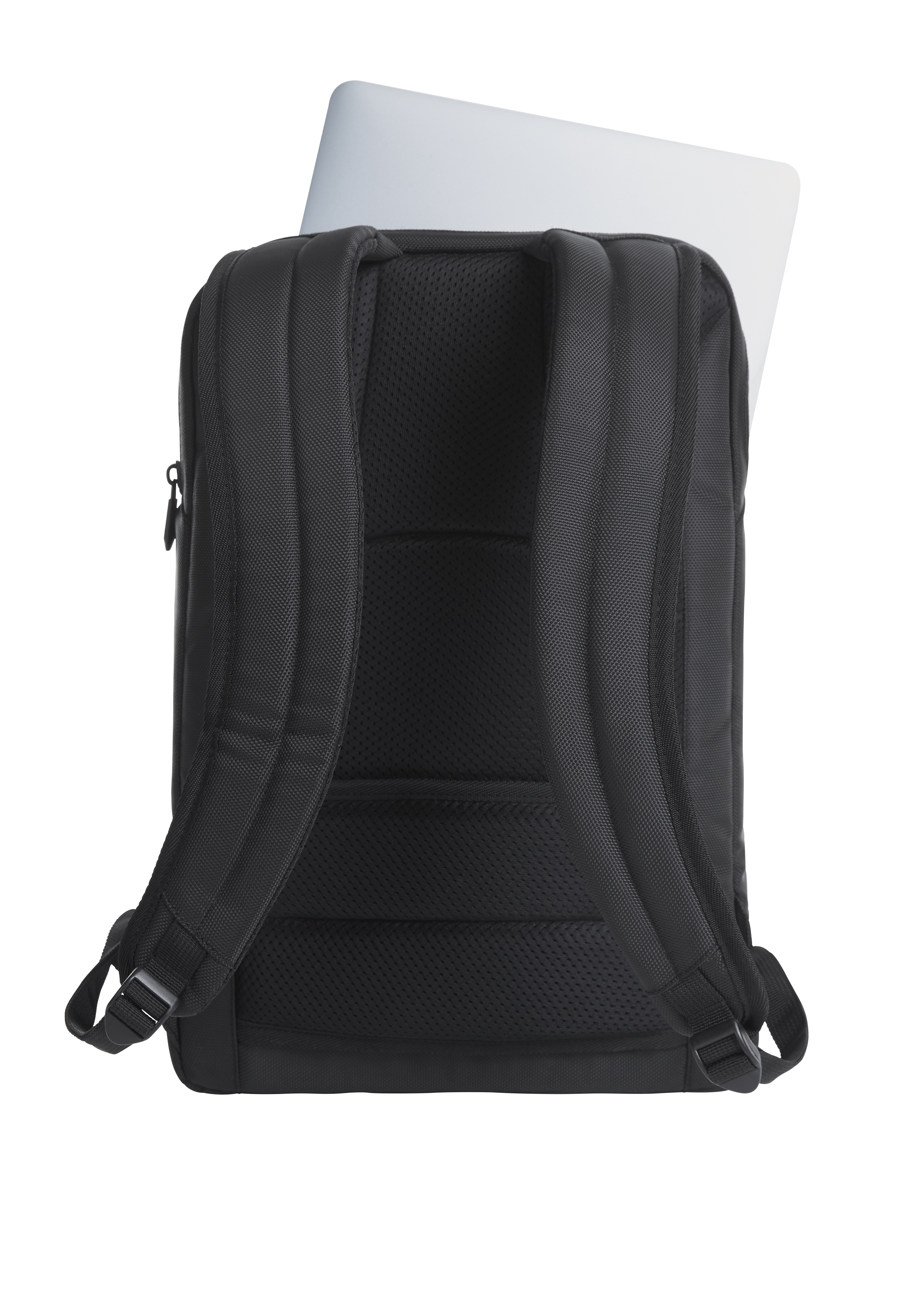 Eleganter, geradlinig gearbeiteter Businessrucksack; gepolstertes 2-Wege-Reißverschluss-Hauptfach mit Organizer-Elementen, gepolstertem Einsteckfach und Reißverschluss-Netzfach; großes, separat zugängliches, gepolstertes Notebookfach mit Kabeldurchlass zum Hauptfach; Reißverschluss-Vortasche; aufwendig gepolsterter Rücken; gepolsterte Befestigungsschlaufe für Trolley-Gestänge; längenverstellbare, gepolsterte Schultergurte; verstärkter Handgriff