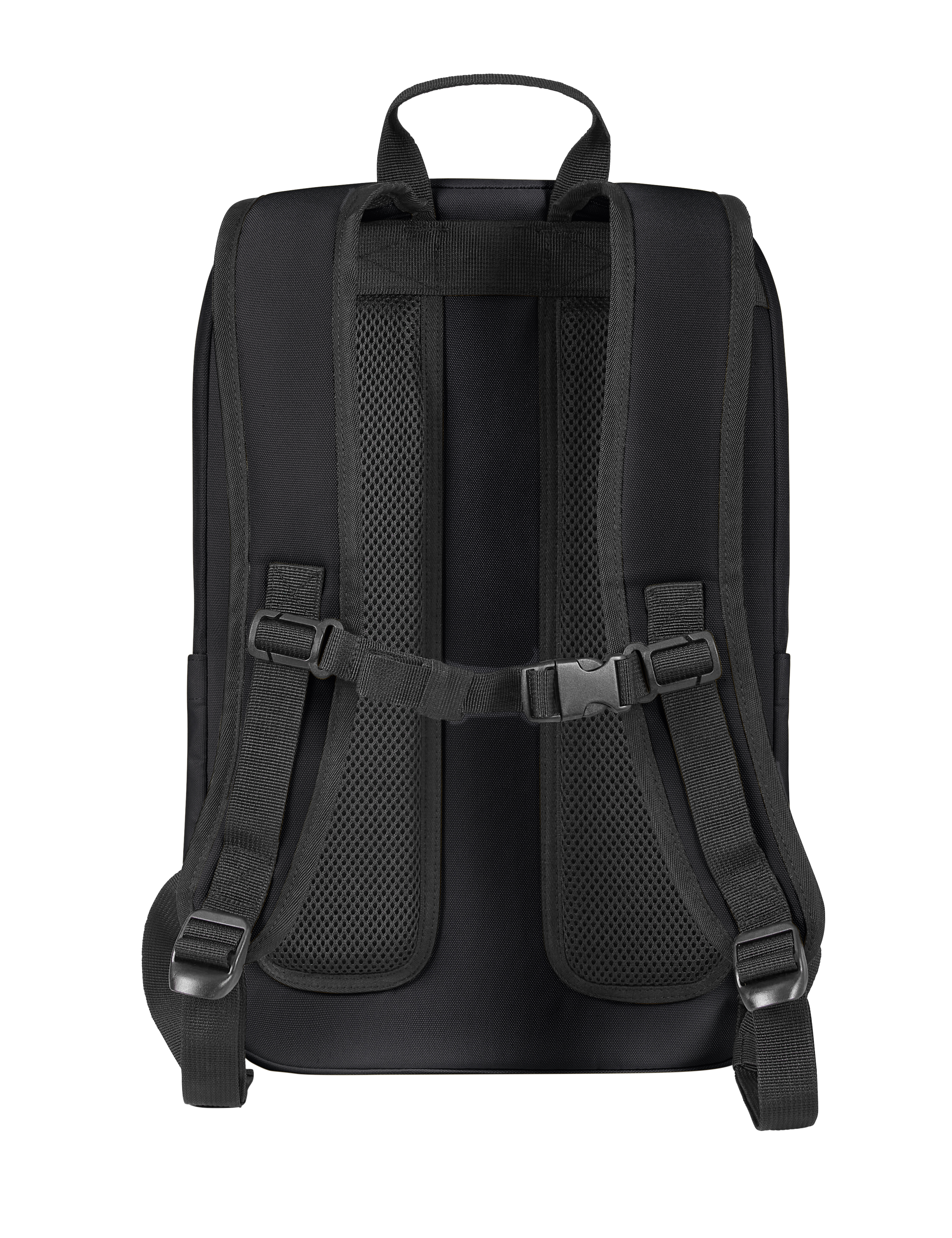 Geräumiges Hauptfach mit 2-Wege-Reißverschluss; gepolstertes Notebookfach; 2 Reißverschluss-Vortaschen; zwei seitliche Einsteckfächer; Rücken und Schultergurte gepolsterter mit höhenverstellbarem Brustgurt; Handgriff