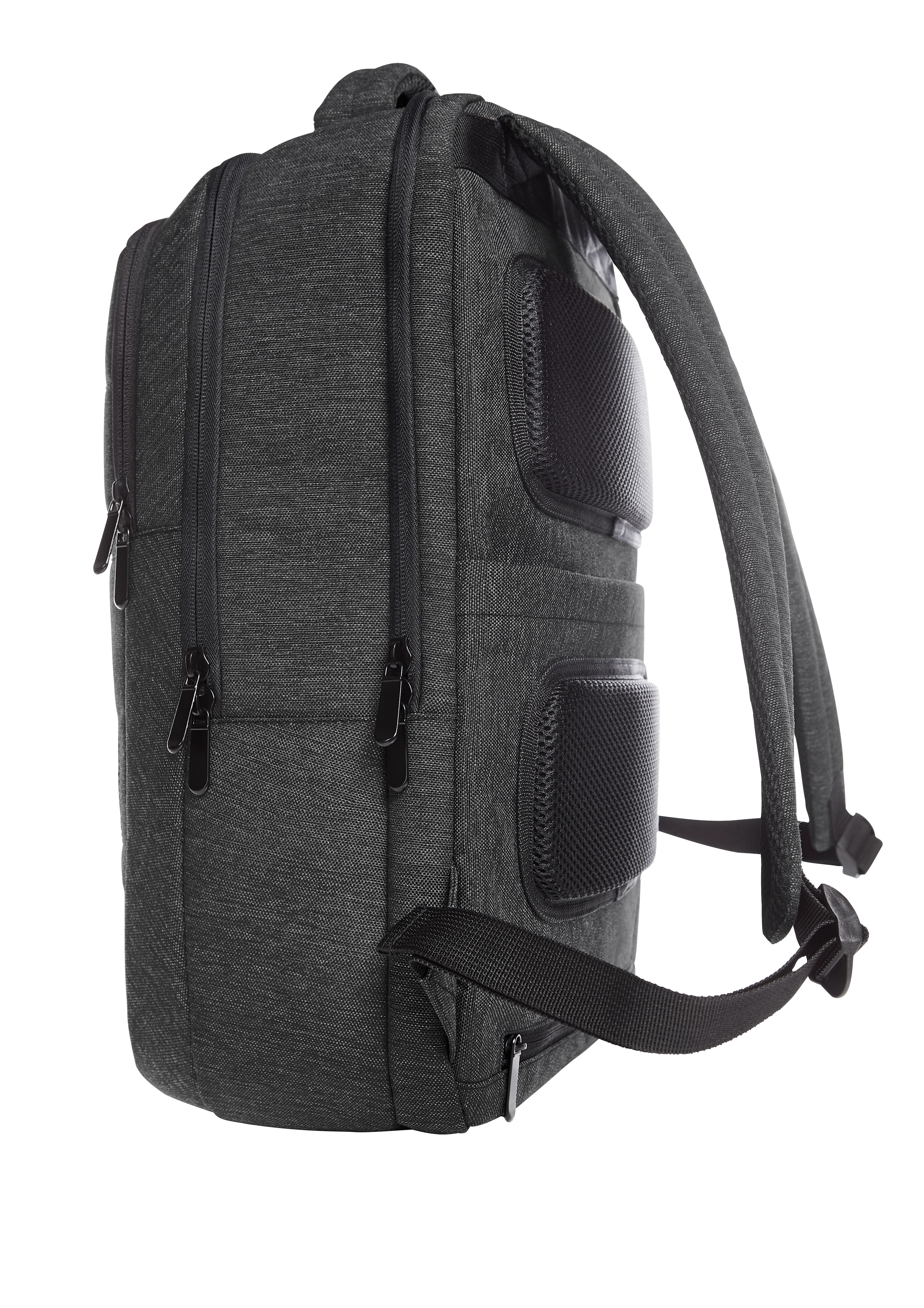 Gepolsterter Businessrucksack mit aufwändig gesteppter Front und HFL® Träger für Ihr Logo; gepolstertes Hauptfach mit flachem Einsteckfach geeignet für DIN A4-Unterlagen; Reißverschluss-Vortasche mit zwei flachen Einsteckfächern; gepolstertes Reißverschluss-Notebookfach; gepolsterter Rücken mit verstecktem Reißverschluss-Fach auch zur Befestigung am Trolley-Gestänge geeignet; längenverstellbare gepolsterte Schultergurte; gepolsterter Handgriff