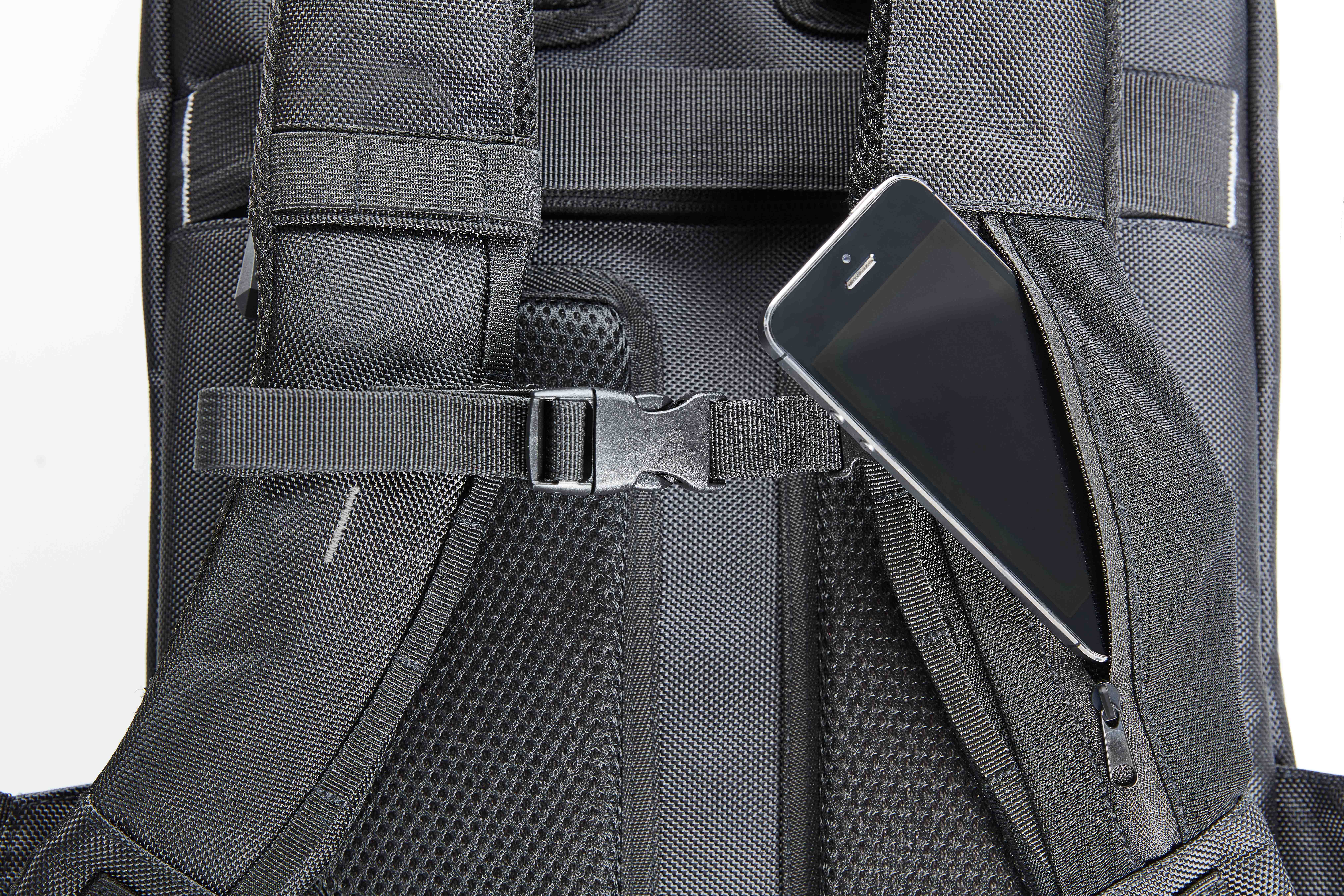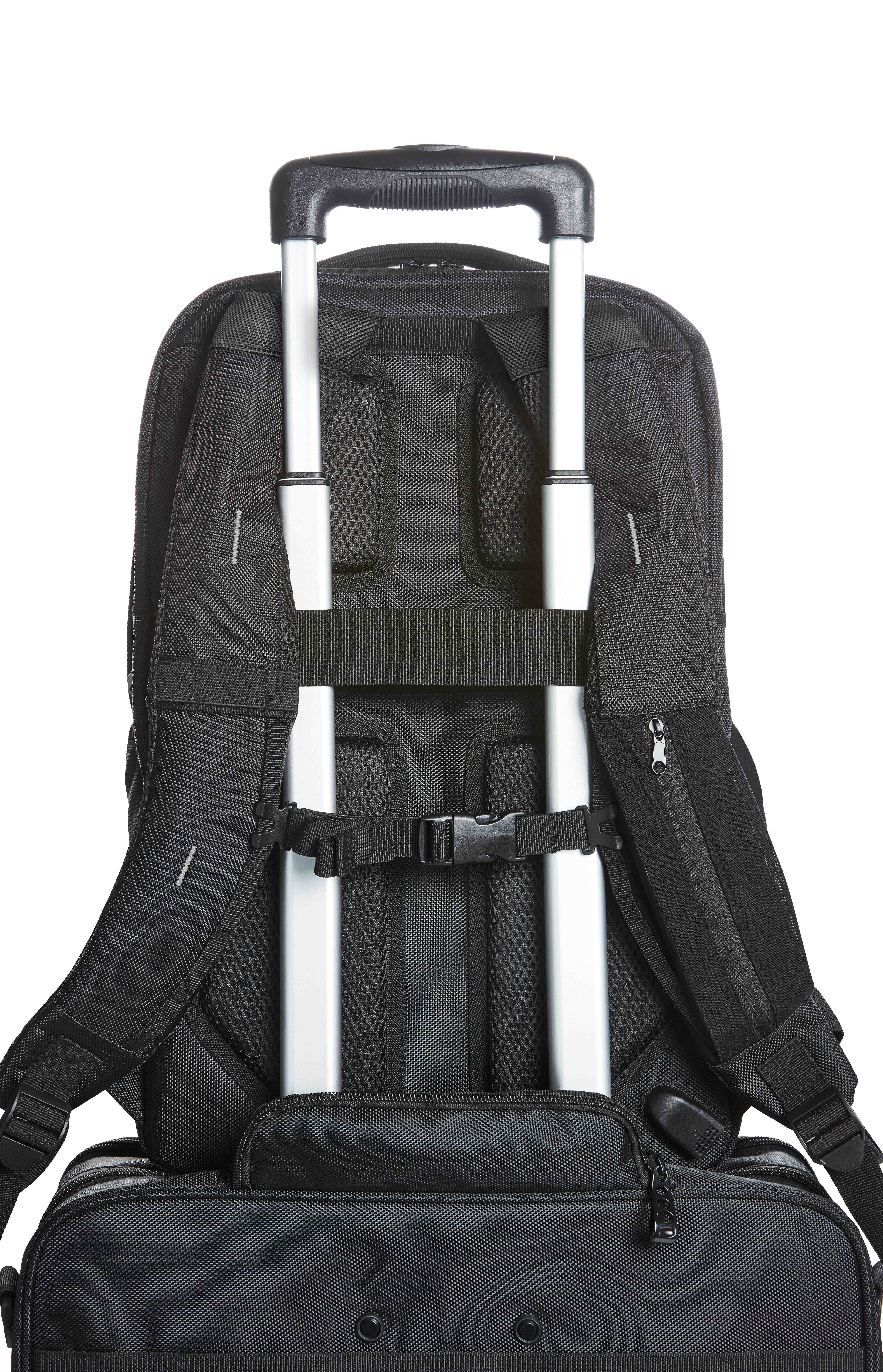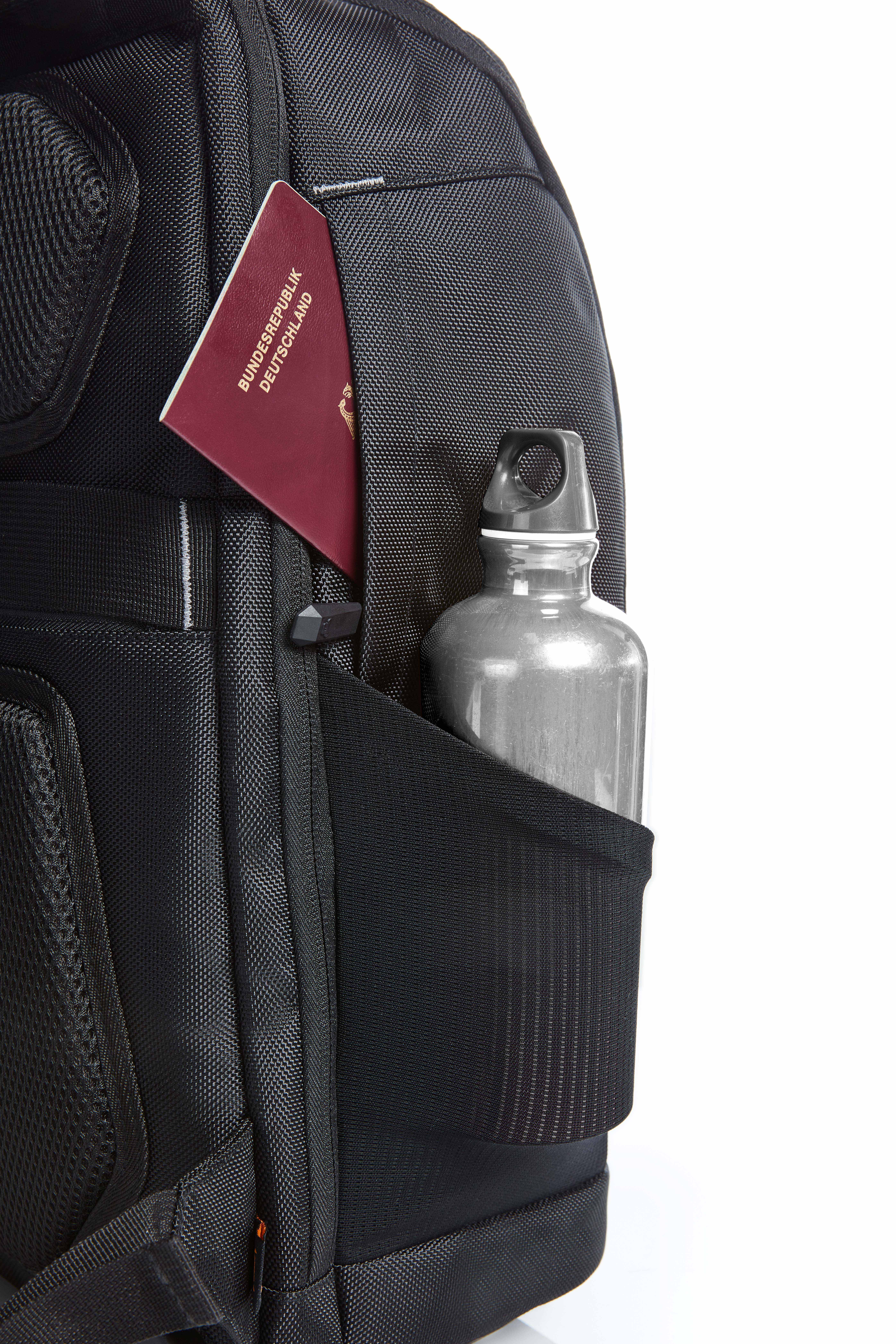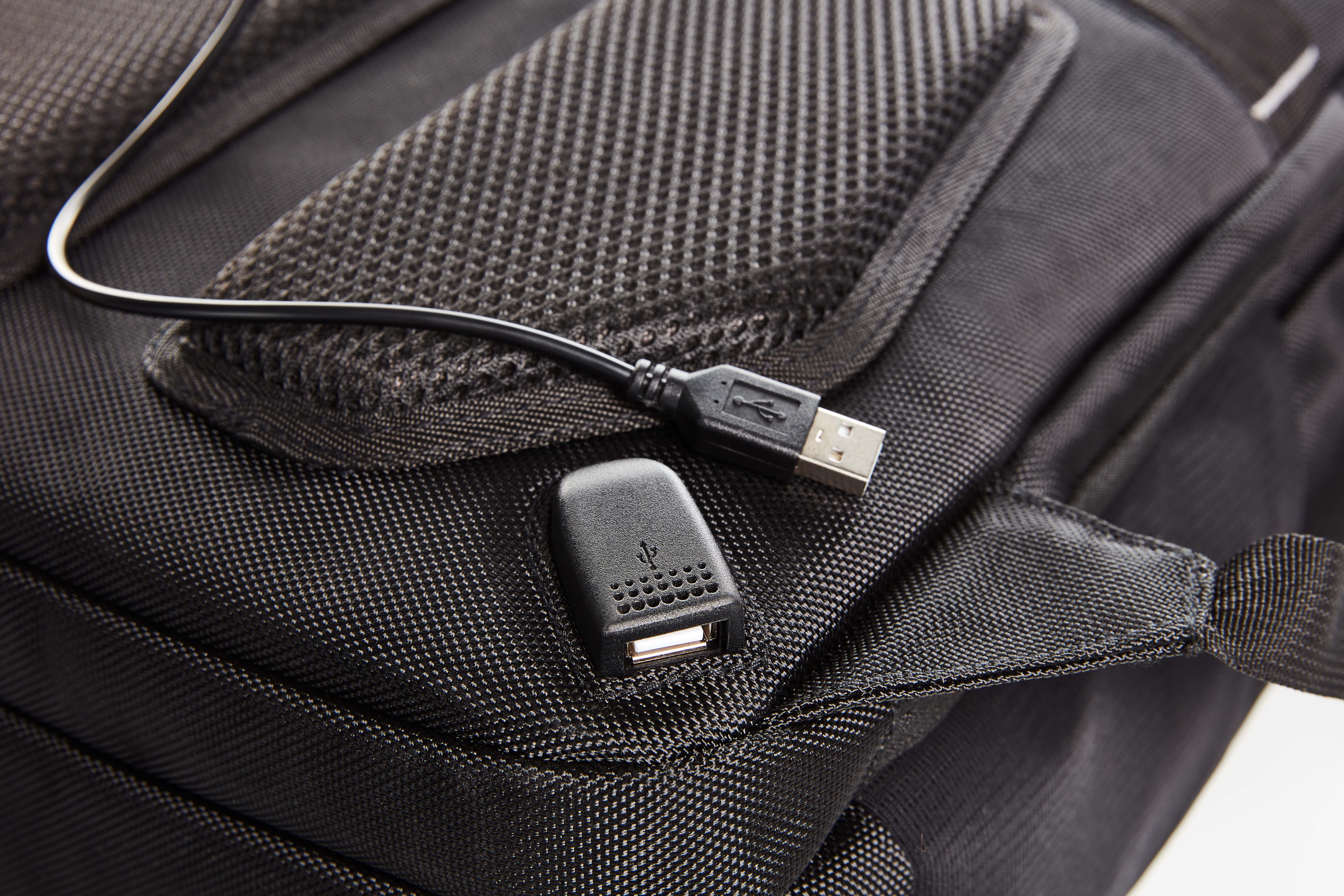 Aufwändig gearbeiteter Businessrucksack mit Reflex-Besatz und LED-Fahrradlicht-Befestigungsmöglichkeit; großes Hauptfach mit 2-Wege-Reißverschluss, Notebookfach für 15" Notebooks, gepolsterter Reißverschluss-Innentasche und flacher Reißverschluss-Tasche; großes 2-Wege-Reißverschluss-Fach mit Veloursfutter, geeignet für 17" Notebook; Reißverschluss-Tasche auf der Front; seitlich zwei elastische Netzfächer, zwei versteckte Reißverschluss-Einsteckfächer; rückseitige Befestigungsschlaufe für Trolley-Gestänge, verstecktes Reißverschluss-Fach, USB-Durchlass mit integriertem Verbindungskabel; umfänglich gepolstertes Tragesystem mit abnehmbarem, verstellbarem und elastischem Brustgurt, elastischen Schlaufen für z. B. Brillenbügel, sowie elastischem Reißverschluss-Netzfach; gepolsterter Handgriff; Reißverschlusschieber (auf der Front) verfügbar in den abgebildeten Farben.