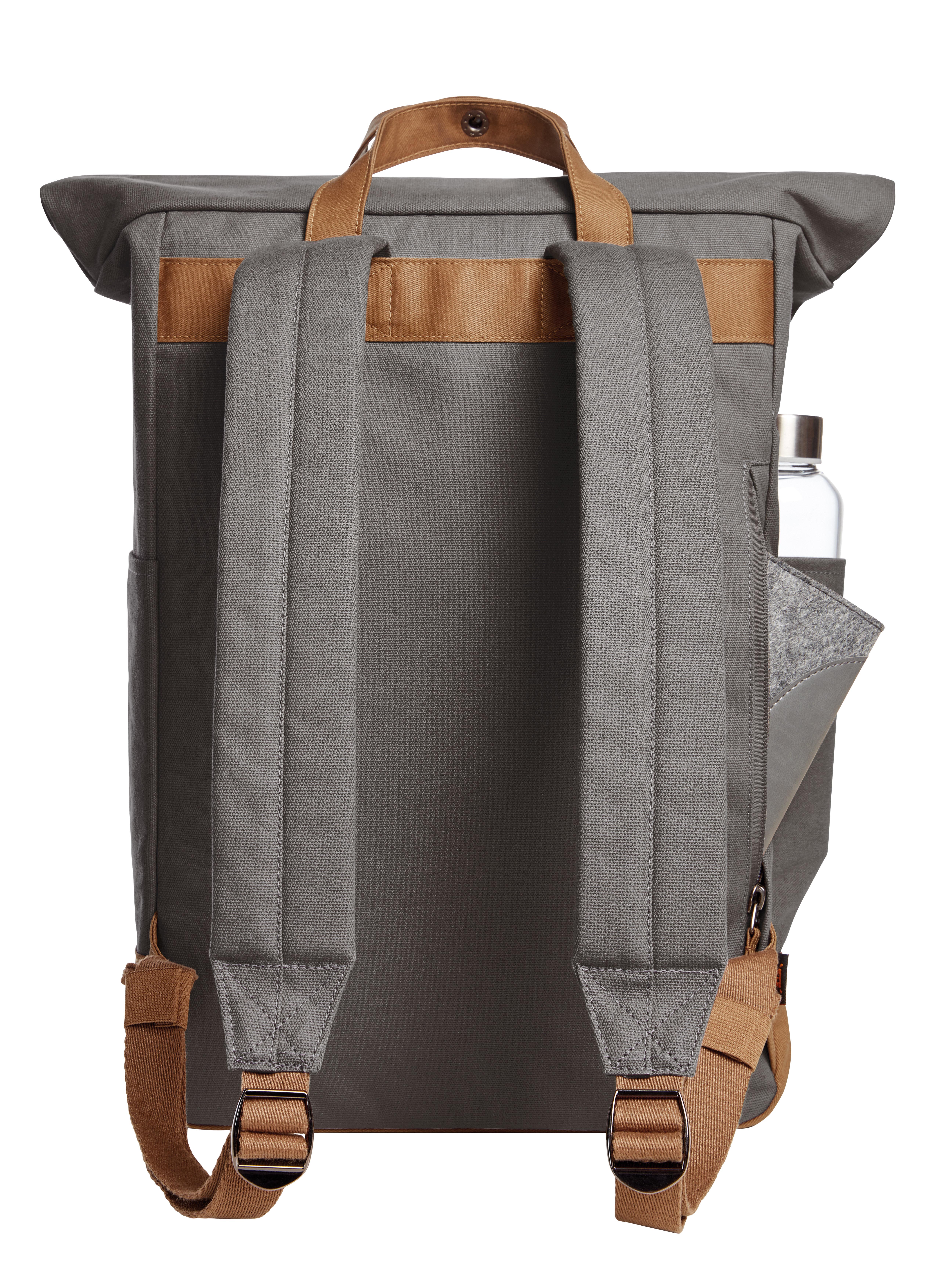 Moderner, aufwändig verarbeiteter Überschlag-Rucksack; liebevoll gestaltet mit wertigen Metall-Accessoires und beschichteten Baumwoll-Besätzen; Überschlag-Fixierung mit eingearbeitetem Magnetverschluss; großes Reißverschluss-Hauptfach; Reißverschluss-Innentasche; gepolstertes Notebookfach; zwei flache Einsteckfächer seitlich; vor Zugriff geschütztes, rückseitiges Reißverschluss-Einsteckfach; Handgriffe mit Druckknopf; gepolsterte, längenverstellbare Schultergurte mit elastischer Fixierung für Gurtband
