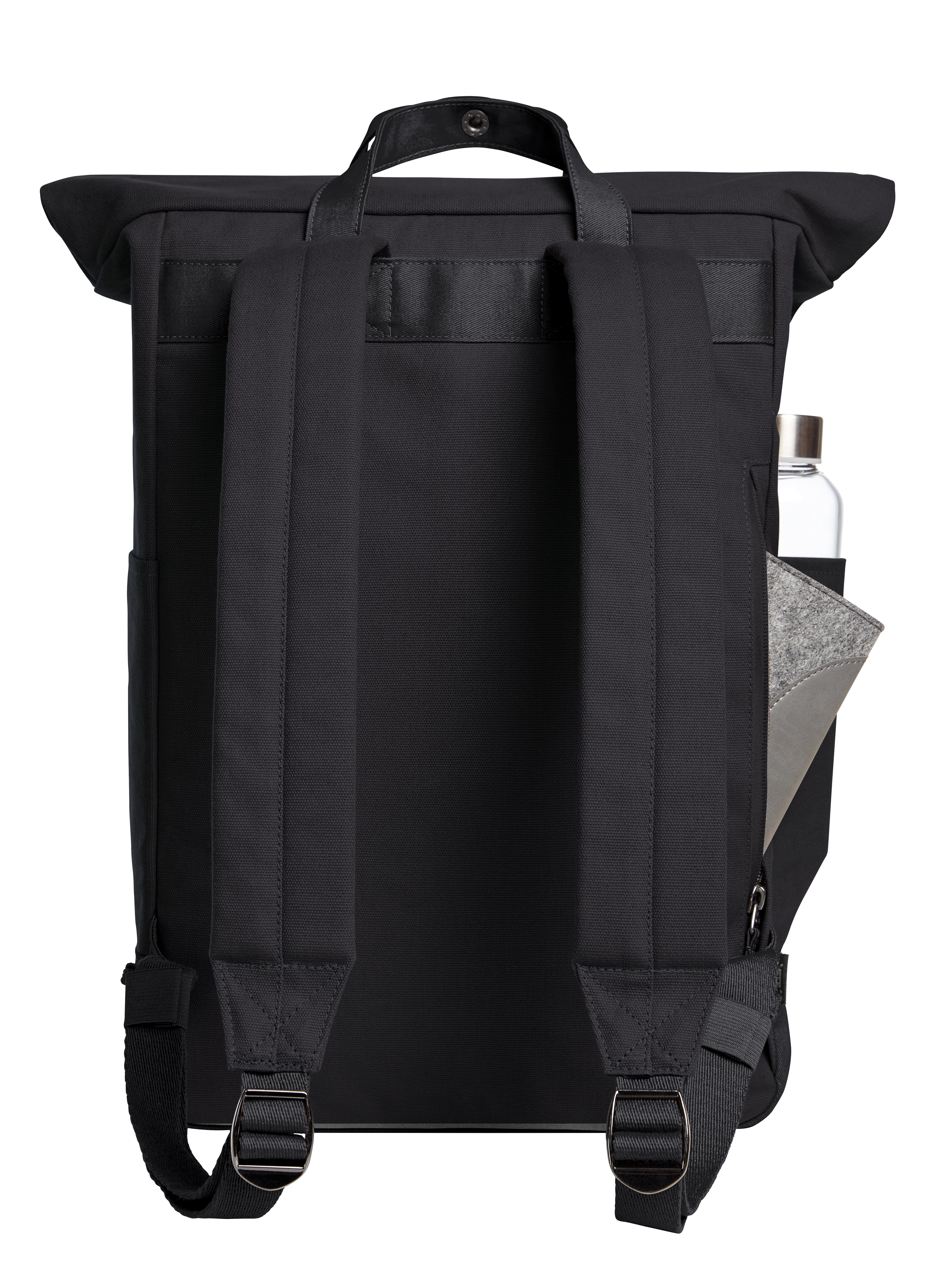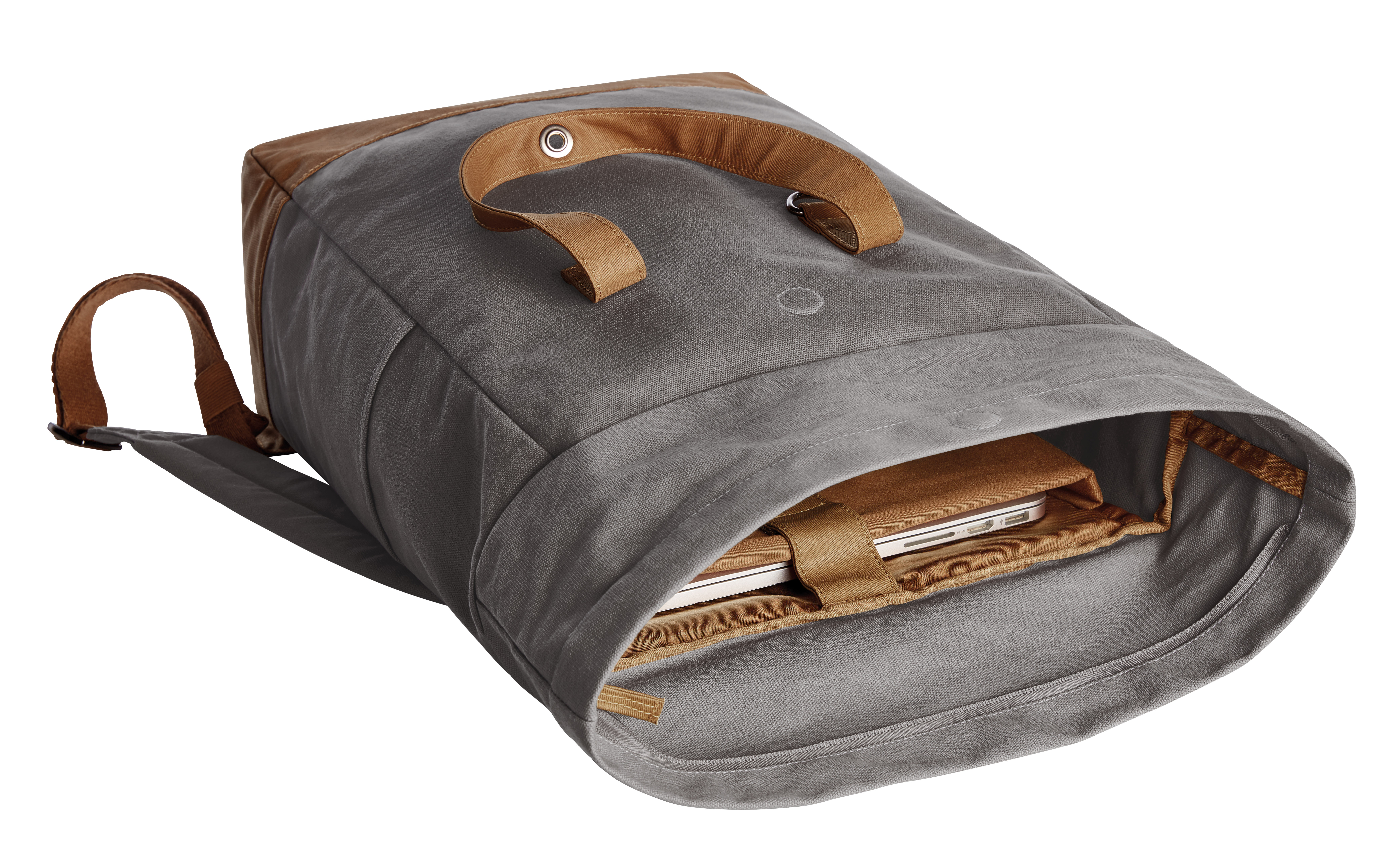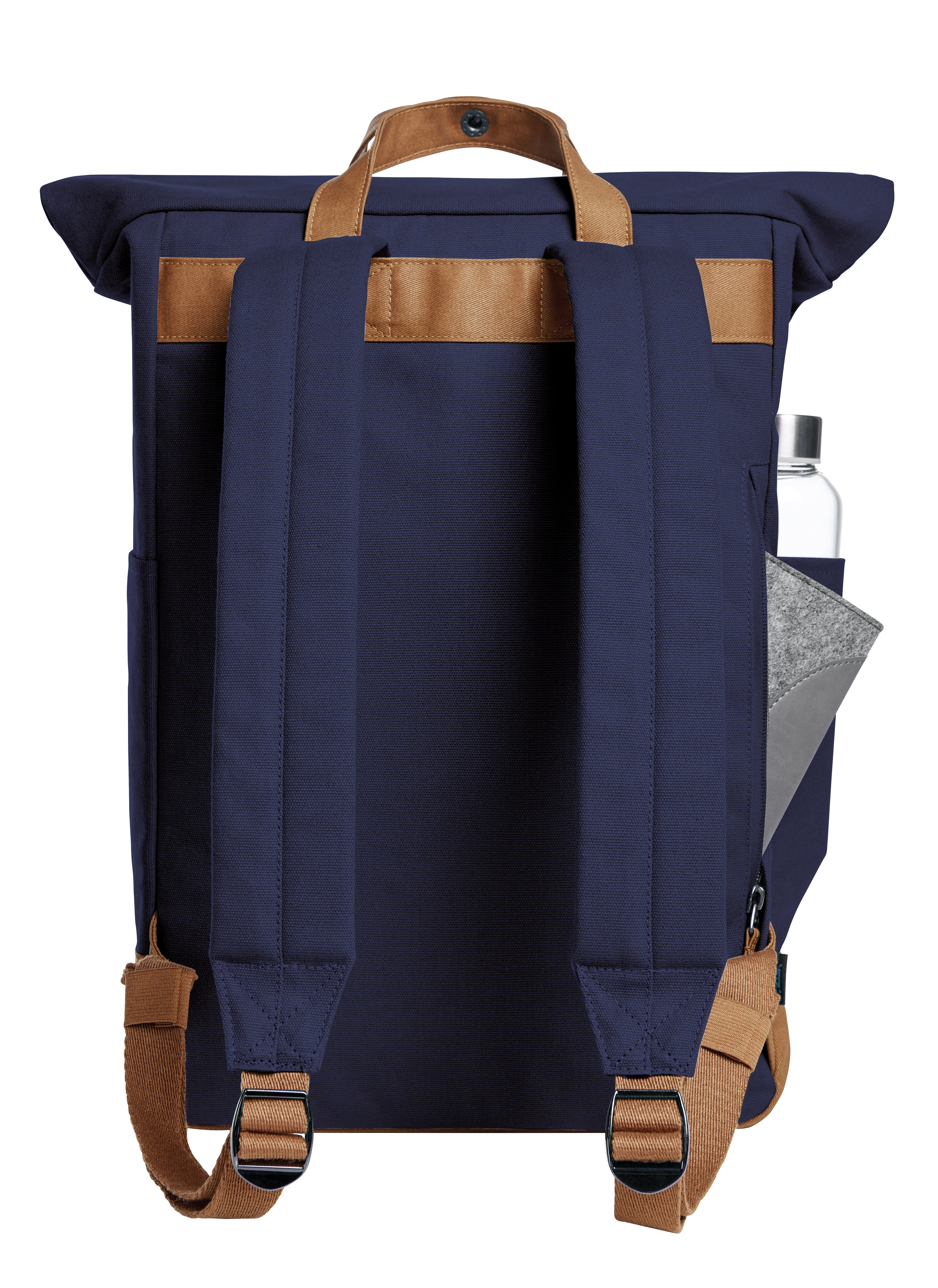 Moderner, aufwändig verarbeiteter Überschlag-Rucksack; liebevoll gestaltet mit wertigen Metall-Accessoires und beschichteten Baumwoll-Besätzen; Überschlag-Fixierung mit eingearbeitetem Magnetverschluss; großes Reißverschluss-Hauptfach; Reißverschluss-Innentasche; gepolstertes Notebookfach; zwei flache Einsteckfächer seitlich; vor Zugriff geschütztes, rückseitiges Reißverschluss-Einsteckfach; Handgriffe mit Druckknopf; gepolsterte, längenverstellbare Schultergurte mit elastischer Fixierung für Gurtband