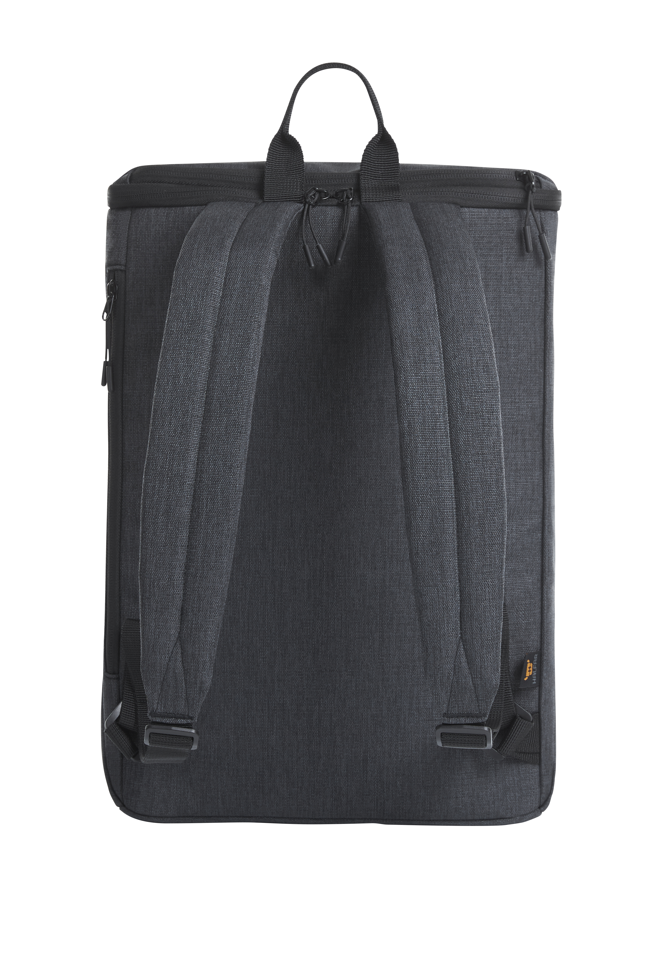 Geradliniger Toplader-Rucksack; 2-Wege-Reißverschluss-Hauptfach; gepolstertes Notebookfach; Einsteckfächer innen; Reißverschluss-Deckelfach; Reißverschluss-Vortasche mit verstecktem Reflex-Zipper und Grifflaschen; gepolstertes Tragesystem; Handgriff