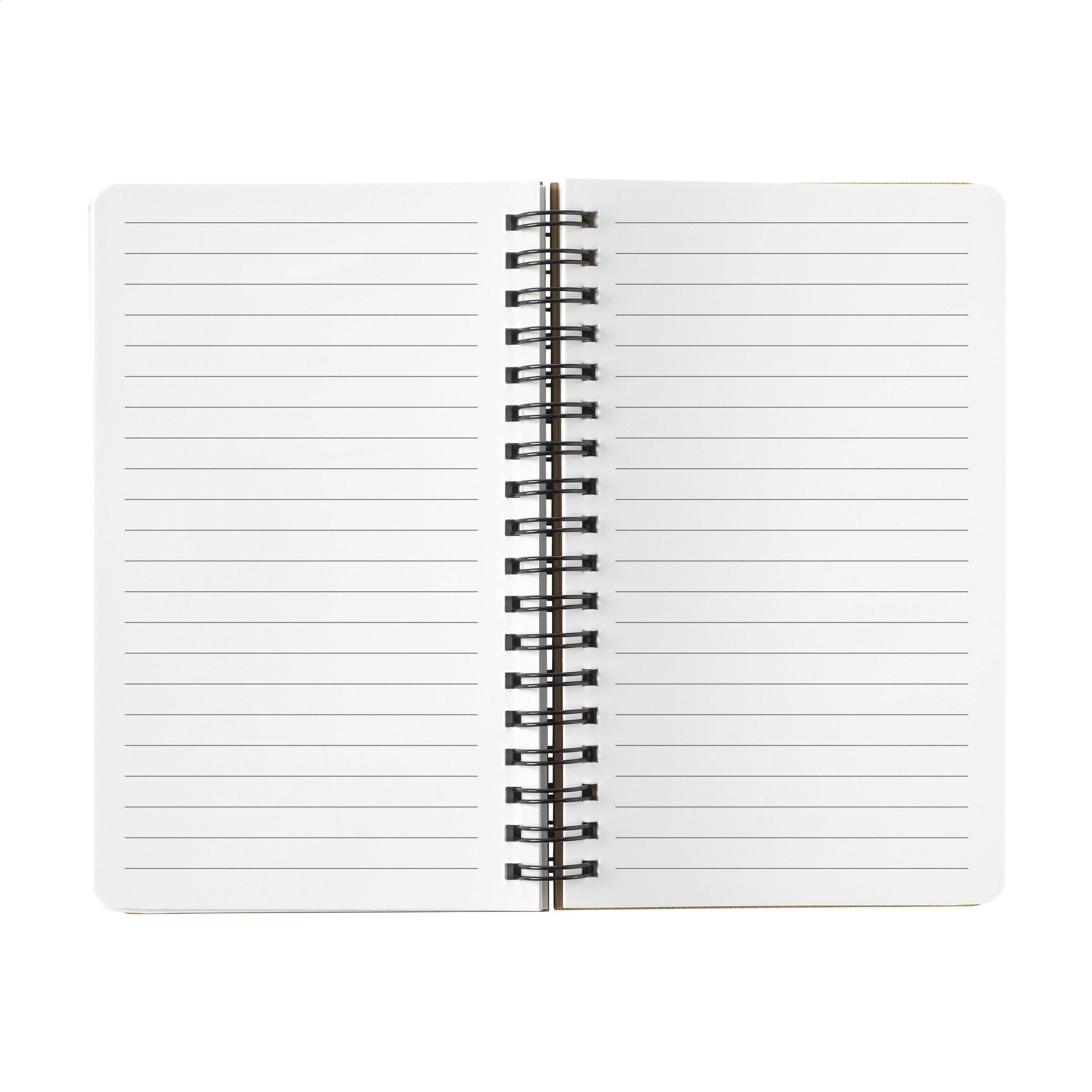 A6-Notizbuch mit 72 Blatt/144 Seiten liniertem Recyclingpapier (120 g/m²) gefertigt aus 80% Steinabfällen mit einem geringen Harzanteil (HDPE) zur Bindung des Steinpulvers. Es werden weit weniger Materialien für diese Produktion benötigt und Bleichmittel oder toxische Subtanzen werden nicht verwendet. Gebunden in einer starken Spiralbindung. Der Bezug aus Bambusholz hat eine längere Lebensdauer als herkömmliches Holz. Bambus kann innerhalb von 5 Jahren geerntet werden (Bäume benötigen 30 – 120 Jahre!) und 4 bis 7 Pflanzen wachsen aus den Wurzelresten! Dieses Notizbuch ist ein typisches Cradle-to-Cradle-Produkt mit zertifiziertem Material, das unendlich recycelt werden kann.