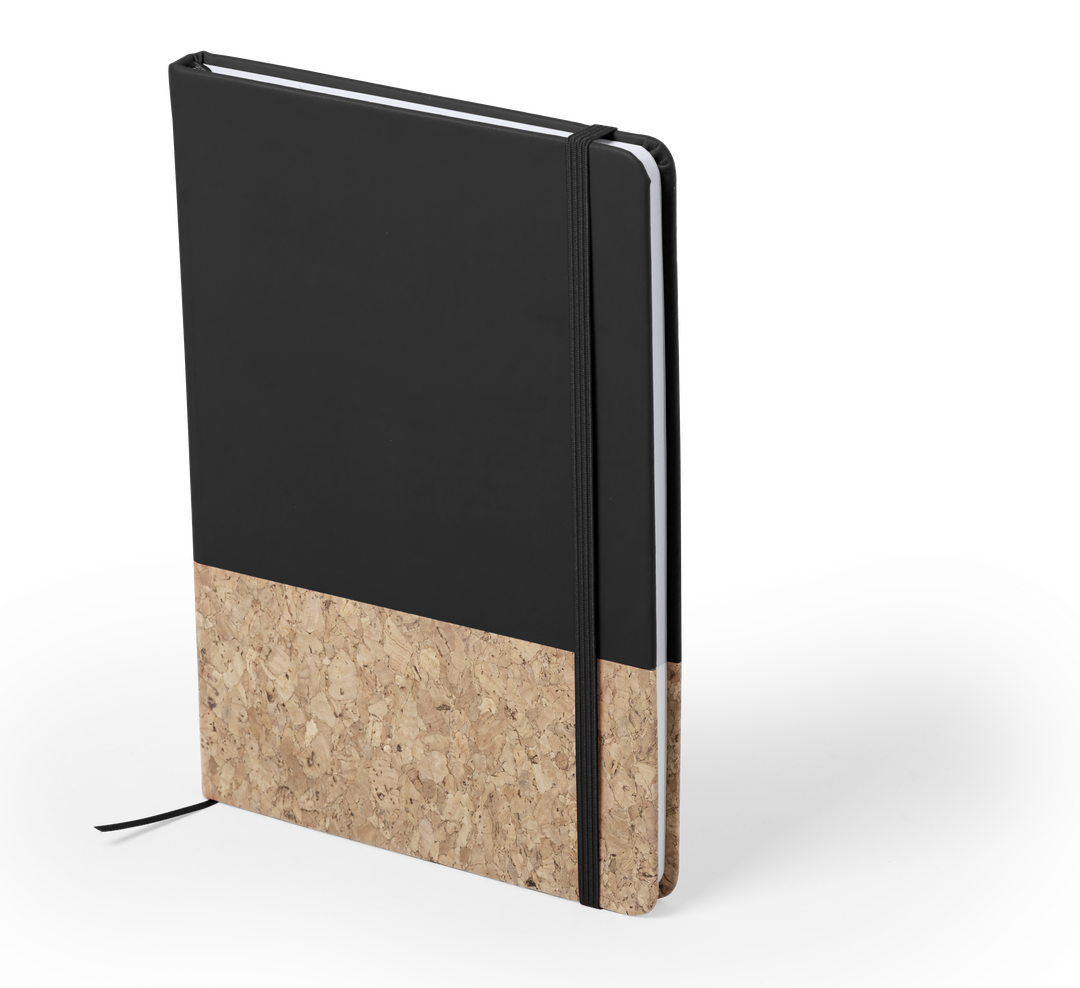 Linie Natur Notizblock in einer Kombination aus Naturkork und Kunstleder mit festem Einband. Mit 100 unbedruckten Blättern mit natürlicher Oberfläche, elastischem Einband und passendem Stofflesezeichen. Erhältlich in einer breiten Farbpalette.