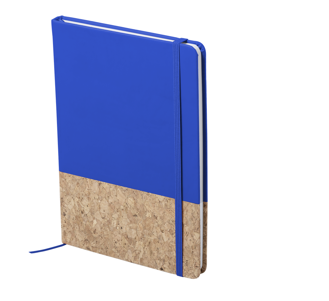 Linie Natur Notizblock in einer Kombination aus Naturkork und Kunstleder mit festem Einband. Mit 100 unbedruckten Blättern mit natürlicher Oberfläche, elastischem Einband und passendem Stofflesezeichen. Erhältlich in einer breiten Farbpalette.