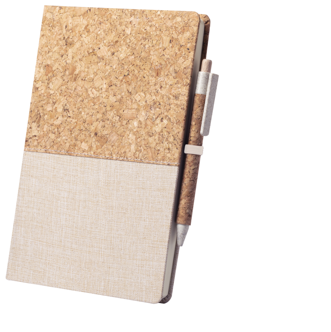 Hardcover-Abdeckung. 80 Blätter. Kork / Weizenstroh / ABS Kugelschreiber Inklusive. Schwarze Tinte