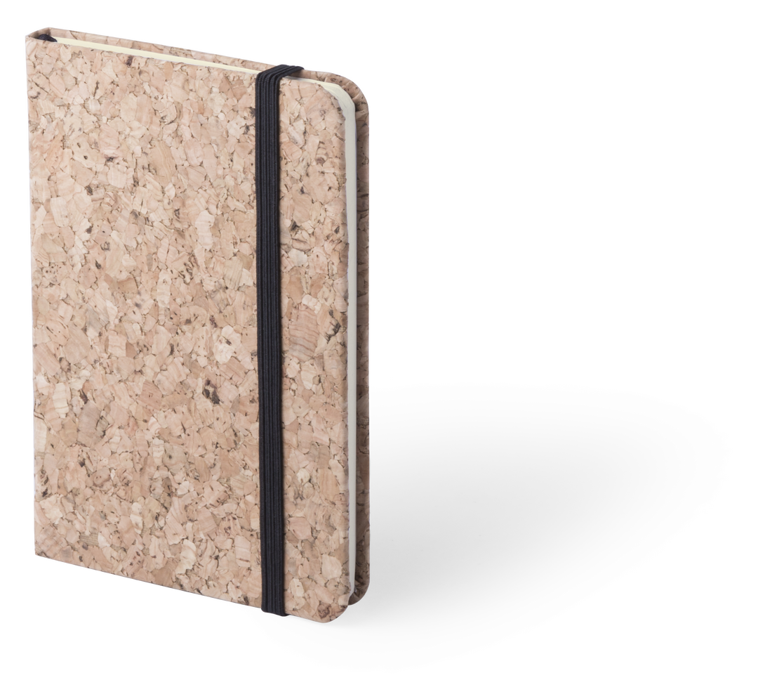 Notizblock mit Soft-Touch-Cover aus Naturkork. Mit 80 Blättern, Gummibandverschluss und farblich passendem Lesezeichenband.