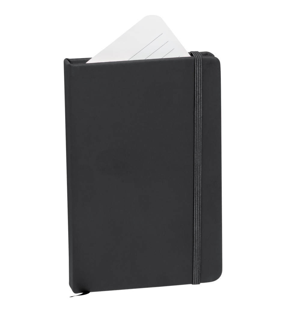 Notizblock mit Soft-Touch-Cover aus Kunstleder in coolen Farben. Mit 100 linierten Blättern, Gummibandverschlussund farblich passendem Lesezeichenband.