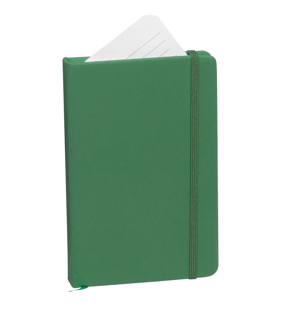 Notizblock mit Soft-Touch-Cover aus Kunstleder in coolen Farben. Mit 100 linierten Blättern, Gummibandverschlussund farblich passendem Lesezeichenband.