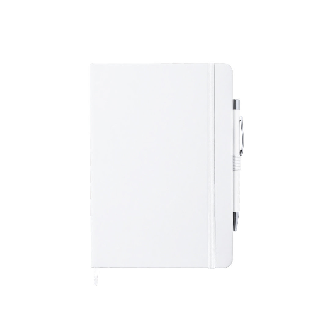Zueinander passendes Set aus Notizblock und Kugelschreiber. Notizbuch mit festem Einband und Soft-Touch-Kunstlederoberfläche, mit Stifthalter, Lesezeichen und elastischem Verschluss, mit 100 linierten Blättern. Aluminium-Kugelschreiber mit gummierter Oberfläche und Jumbo-Mine. Erhältlich in einer Reihe von Farben.