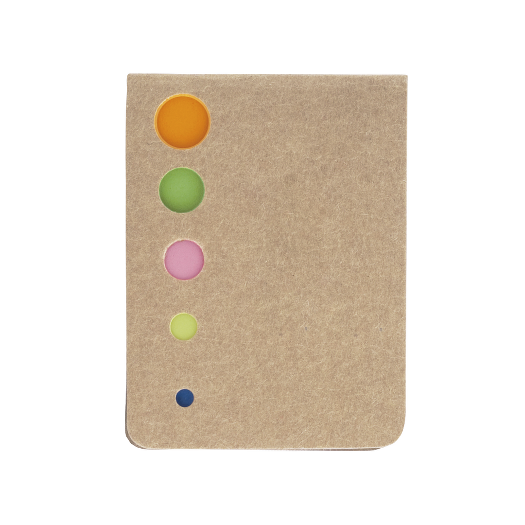 Haftnotizblock mit Soft-Touch-Cover, aus Recyclingkarton mit Stanzung. Mit 100 Mini-Haftnotizen.