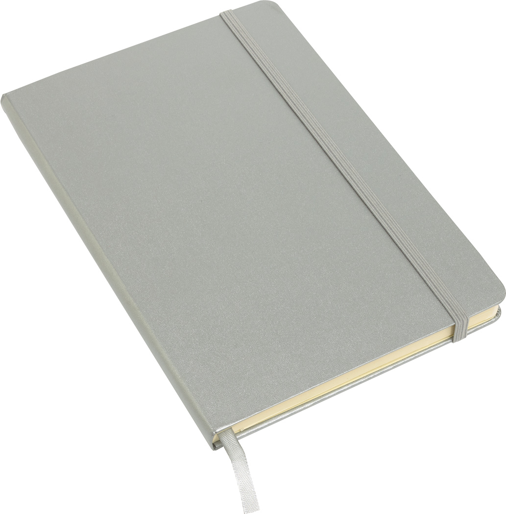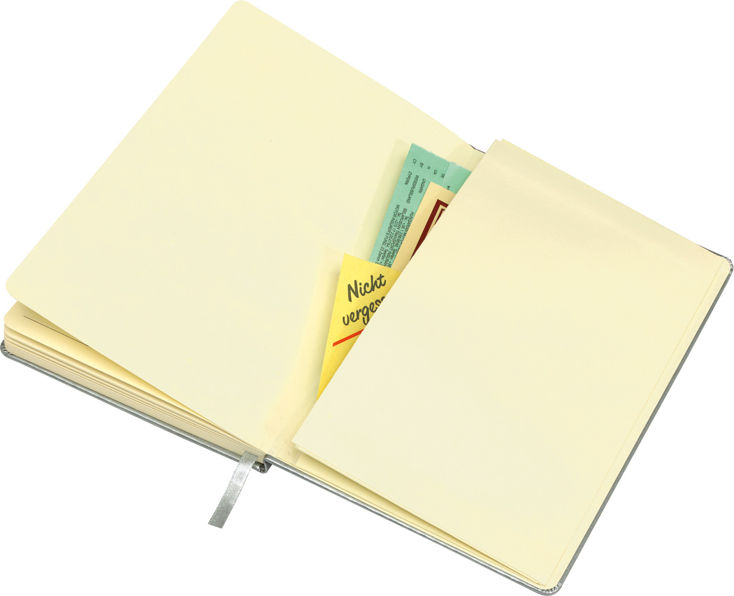 Notizbuch ATTENDANT: im DIN-A5-Format mit abgerundeten Ecken, Gummiband zum Verschließen, mit integriertem Lesezeichen und am Ende mit extra Falttasche zur Aufbewahrung von Notizzetteln, 80 Blätter, liniert, 80g / m²