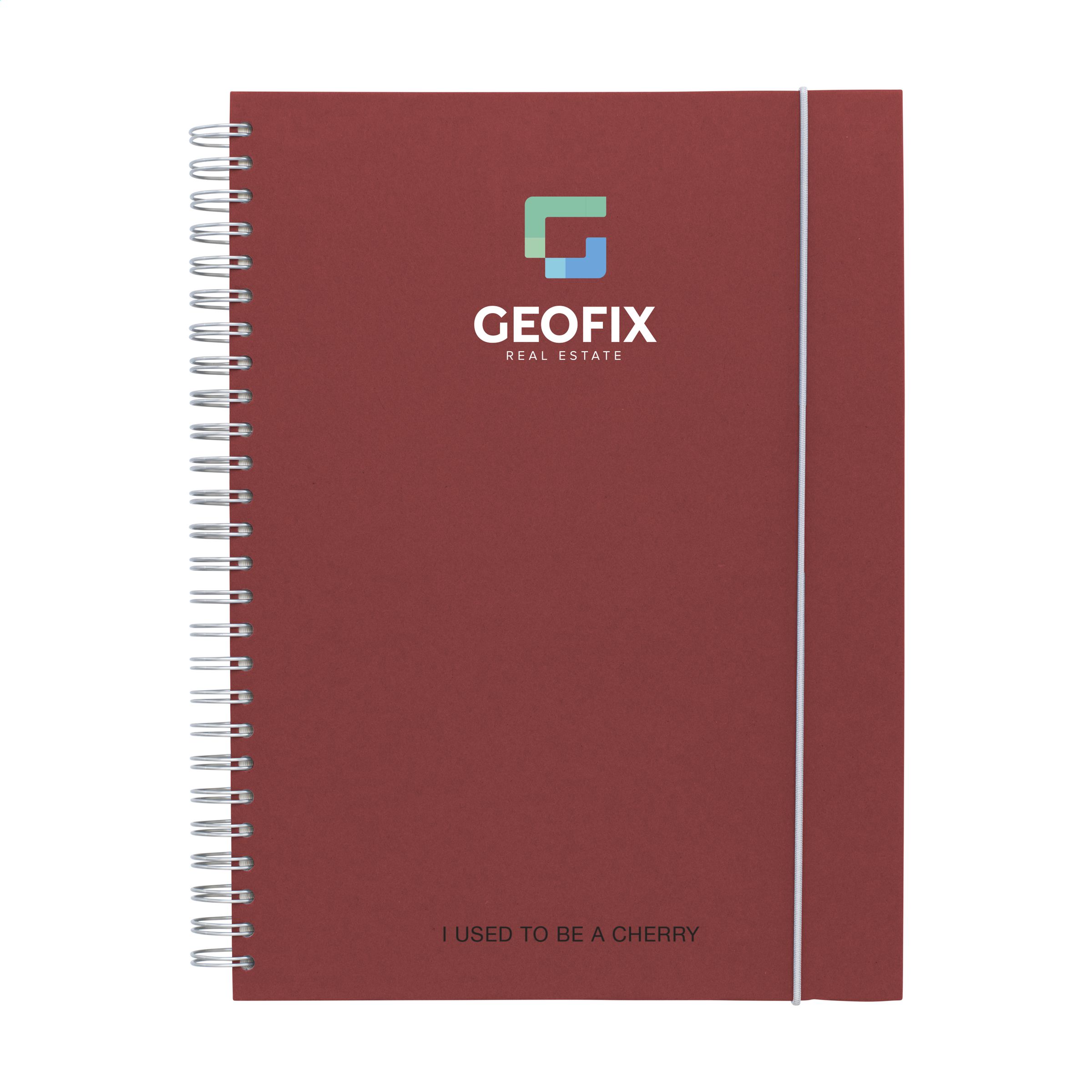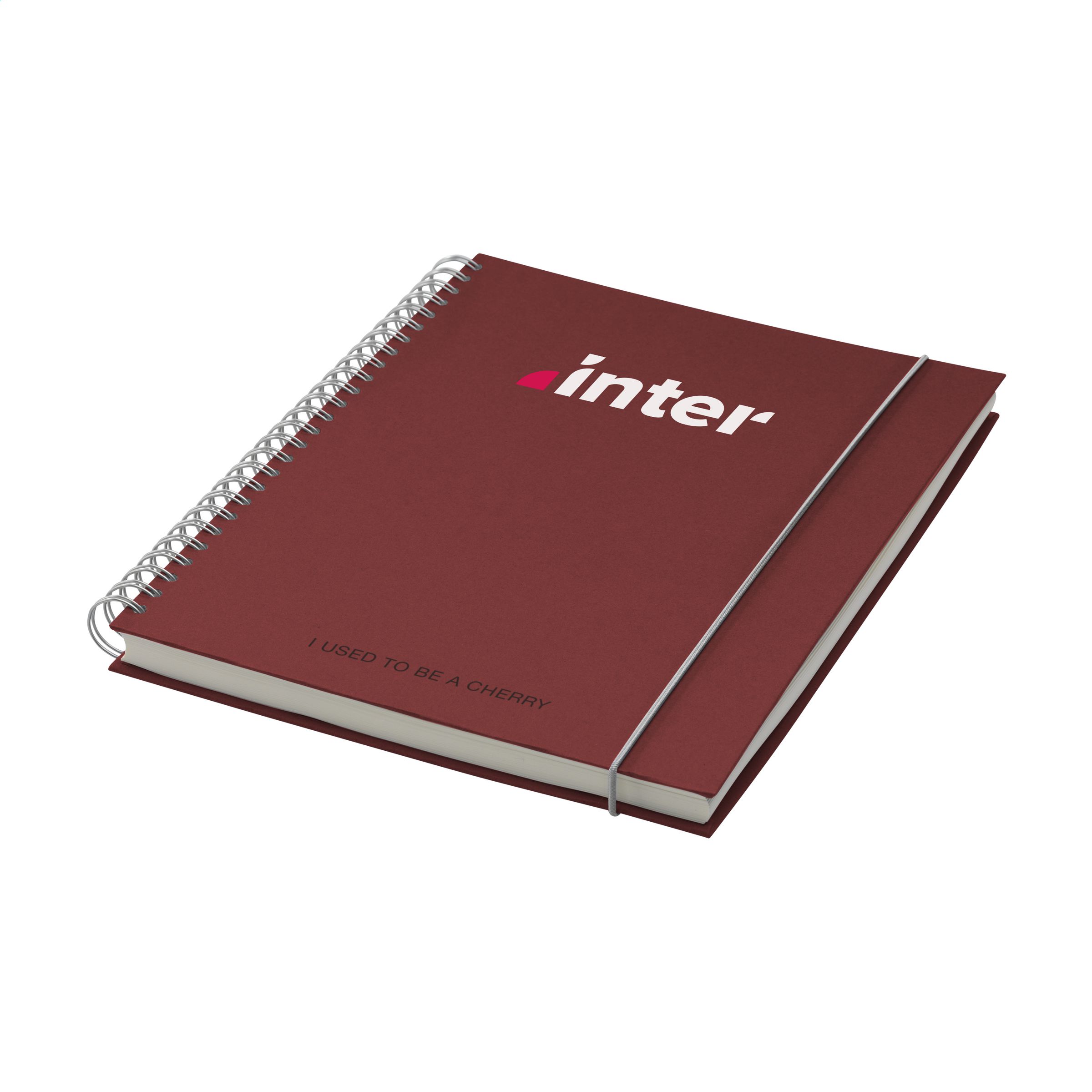 WoW! Notizbuch im A5-Format. Mit 100 Blatt/200 Seiten liniertem Papier (80 g / m²), einer stabilen Wire-O-Bindung und einem Verschlussgummi. Der Hardcover-Einband besteht zu 15% aus landwirtschaftlichen und organischen Abfällen, z. B. von Tomaten, Paprika, Pflanzen und Zwiebeln. Diese Abfälle werden mit Recyclingpapier aus Europa gemischt. Ein praktisches Notizbuch, um Ideen zu notieren und festzuhalten.