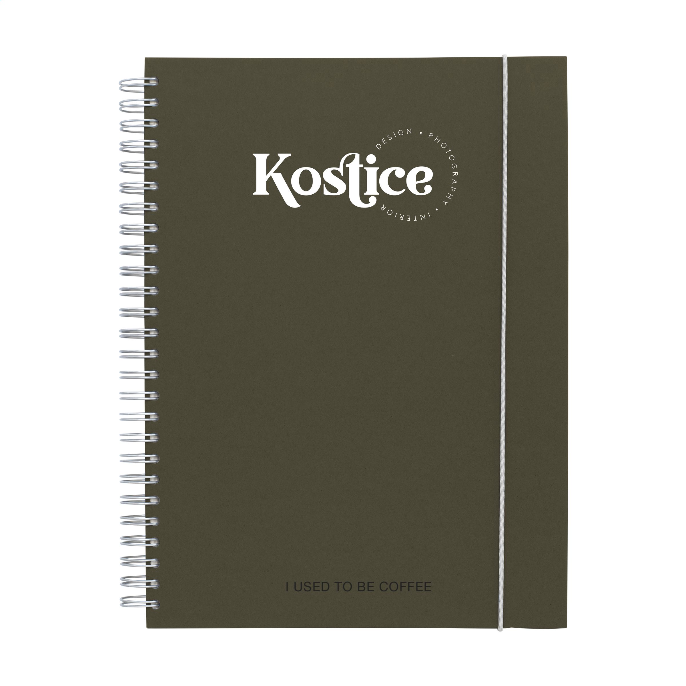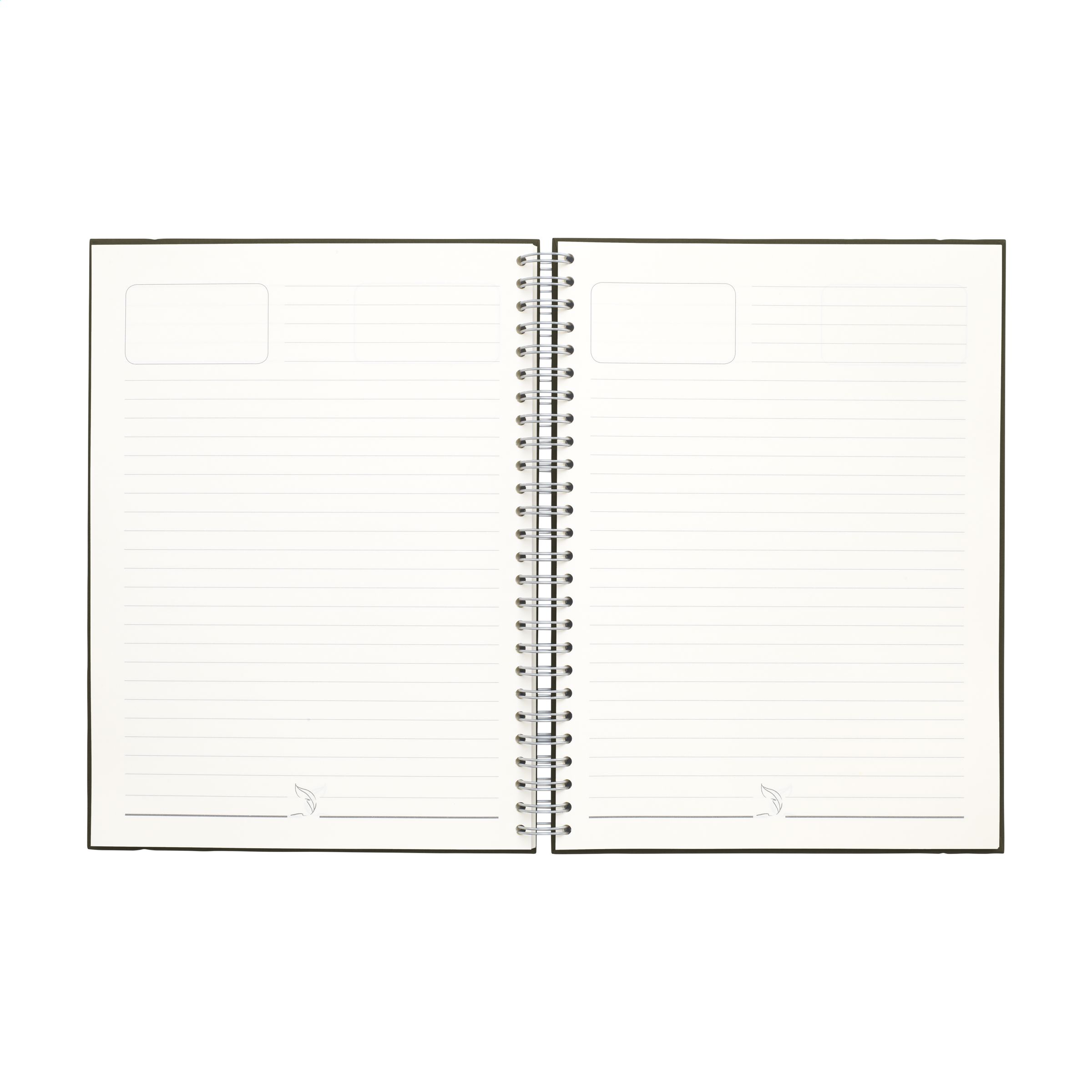 WoW! Notizbuch im A5-Format. Mit 100 Blatt/200 Seiten liniertem Papier (80 g / m²), einer stabilen Wire-O-Bindung und einem Verschlussgummi. Der Hardcover-Einband besteht zu 15% aus landwirtschaftlichen und organischen Abfällen, z. B. von Tomaten, Paprika, Pflanzen und Zwiebeln. Diese Abfälle werden mit Recyclingpapier aus Europa gemischt. Ein praktisches Notizbuch, um Ideen zu notieren und festzuhalten.