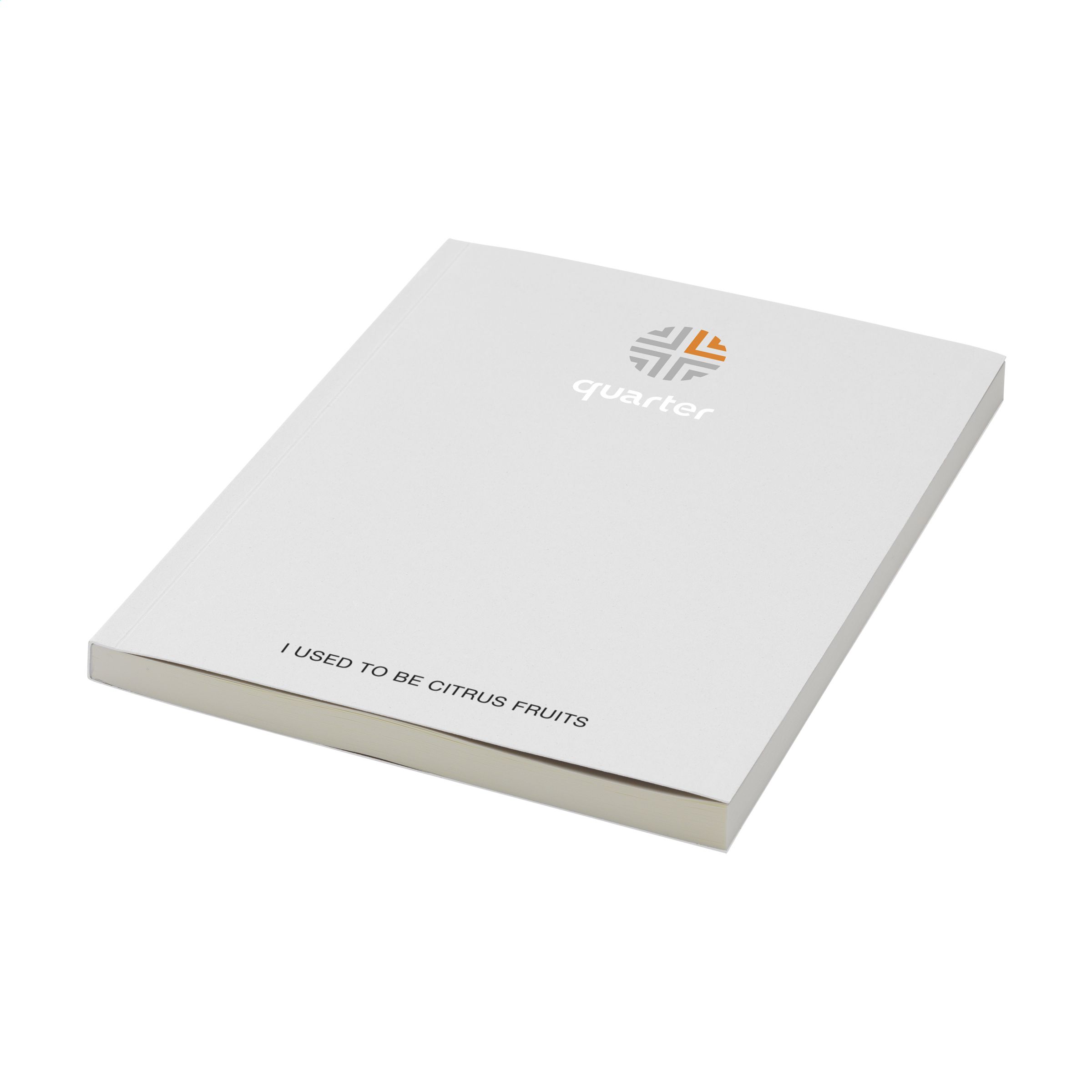 WoW! Notizbuch im A5-Format. Mit 100 Blatt/200 Seiten liniertem Papier (80 g / m²). Der Softcover-Einband besteht zu 15% aus landwirtschaftlichen und organischen Abfällen, z. B. von Tomaten, Paprika, Pflanzen und Zwiebeln. Diese Abfälle werden mit Recyclingpapier aus Europa gemischt. Ein praktisches Notizbuch, um Ideen zu notieren und festzuhalten.