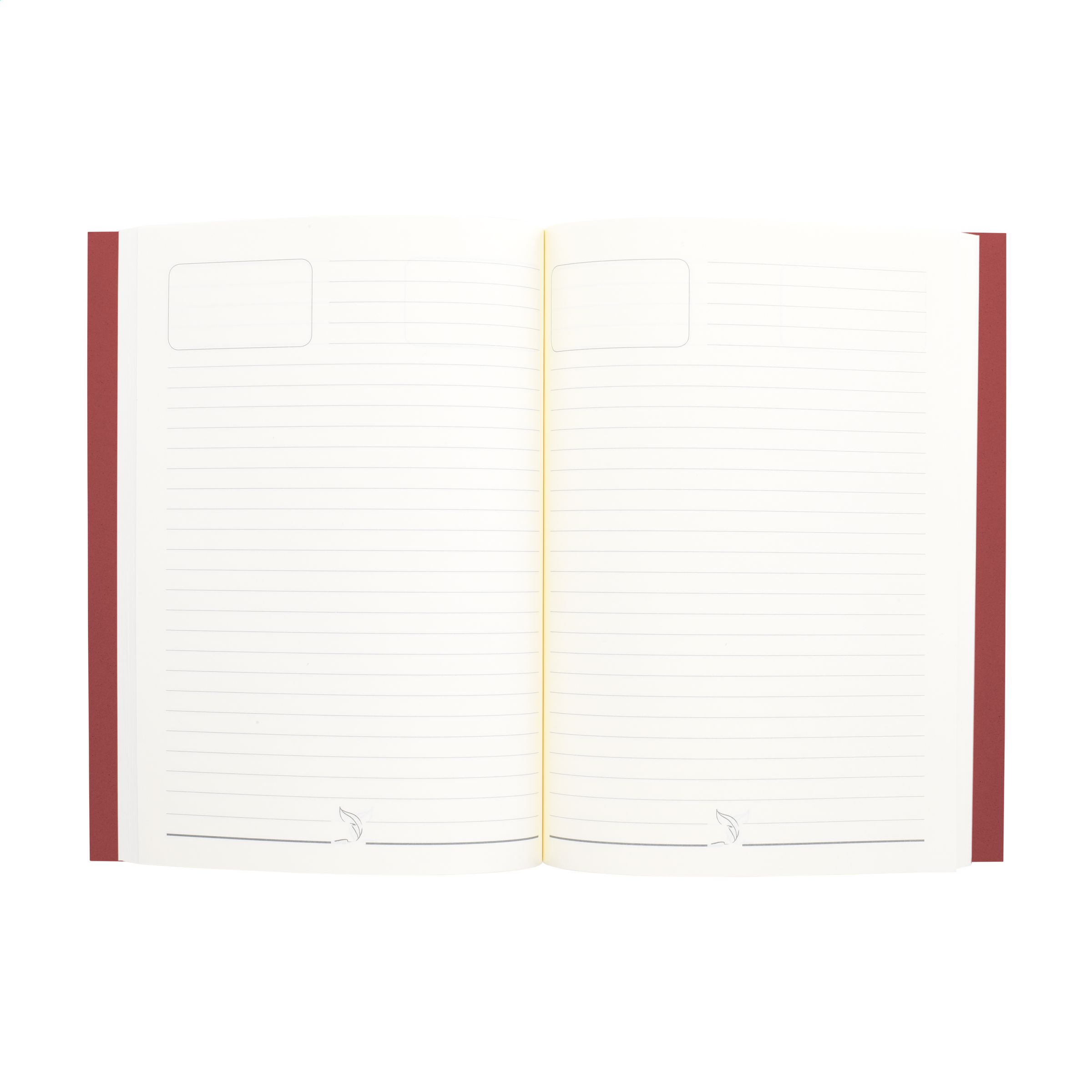 WoW! Notizbuch im A5-Format. Mit 100 Blatt/200 Seiten liniertem Papier (80 g / m²). Der Softcover-Einband besteht zu 15% aus landwirtschaftlichen und organischen Abfällen, z. B. von Tomaten, Paprika, Pflanzen und Zwiebeln. Diese Abfälle werden mit Recyclingpapier aus Europa gemischt. Ein praktisches Notizbuch, um Ideen zu notieren und festzuhalten.