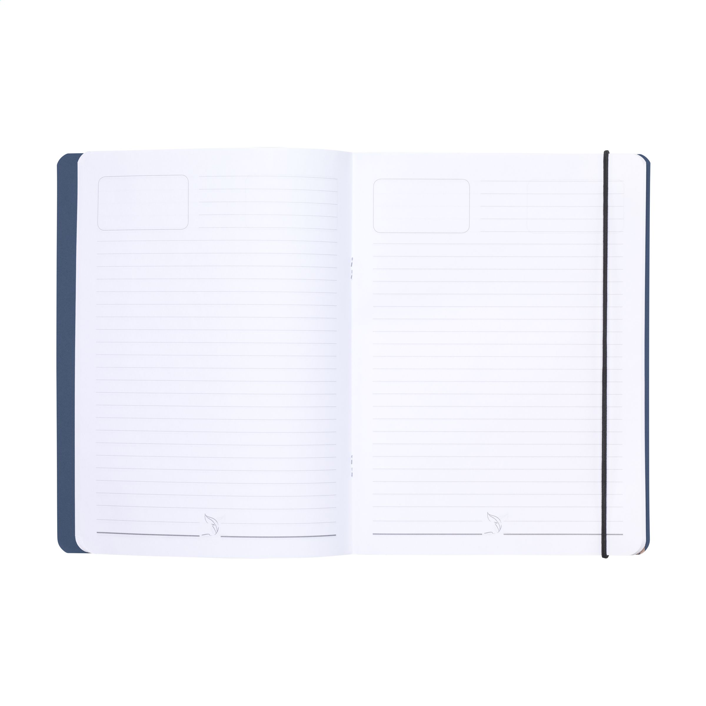 WoW! Notizbuch im A5-Format. Mit 32 Blatt/64 Seiten liniertem Papier (80 g / m²). Der Softcover-Einband besteht zu 15% aus landwirtschaftlichen und organischen Abfällen, z. B. von Tomaten, Paprika, Pflanzen und Zwiebeln. Diese Abfälle werden mit Recyclingpapier aus Europa gemischt. Ein praktisches Notizbuch, um Ideen zu notieren und festzuhalten.
