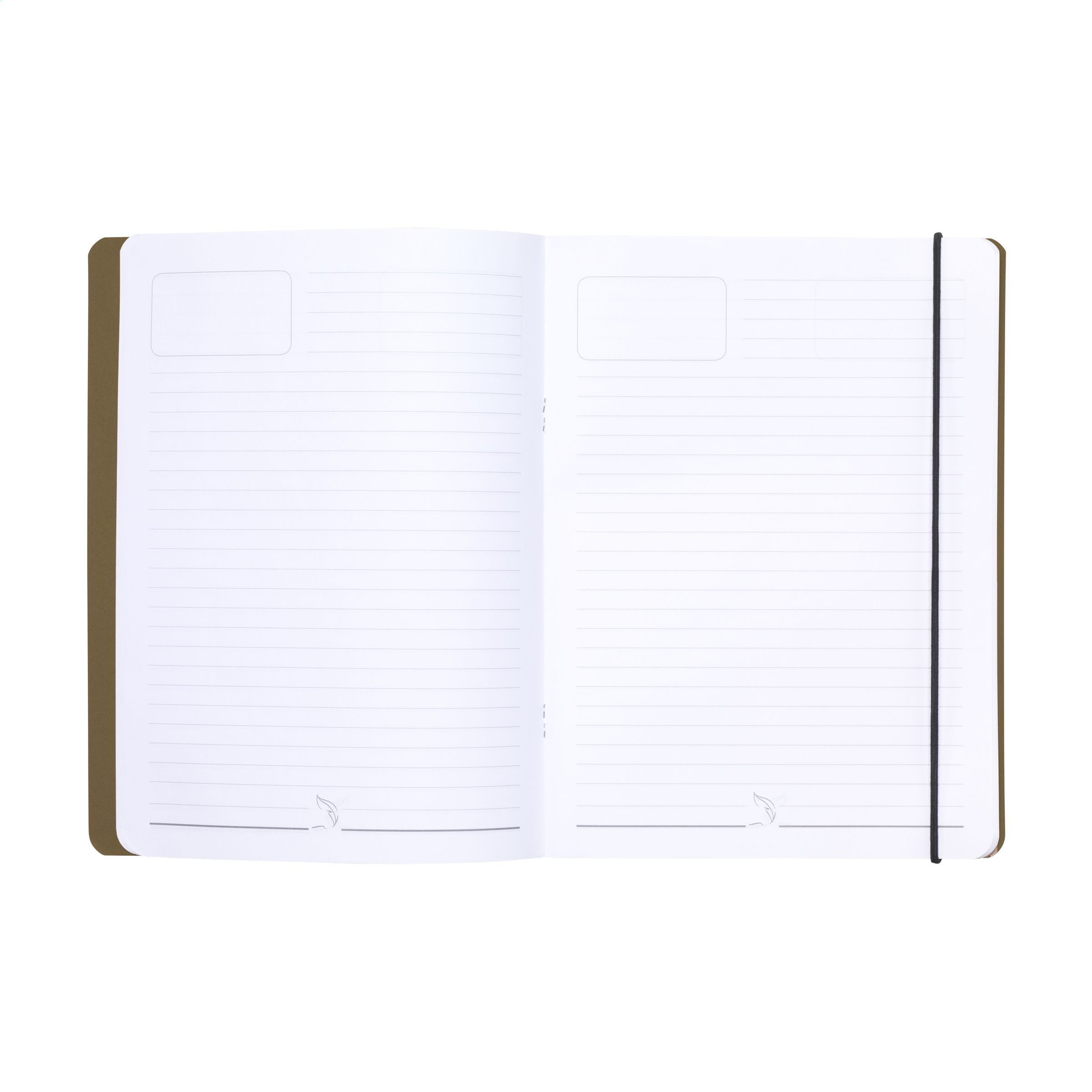 WoW! Notizbuch im A5-Format. Mit 32 Blatt/64 Seiten liniertem Papier (80 g / m²). Der Softcover-Einband besteht zu 15% aus landwirtschaftlichen und organischen Abfällen, z. B. von Tomaten, Paprika, Pflanzen und Zwiebeln. Diese Abfälle werden mit Recyclingpapier aus Europa gemischt. Ein praktisches Notizbuch, um Ideen zu notieren und festzuhalten.