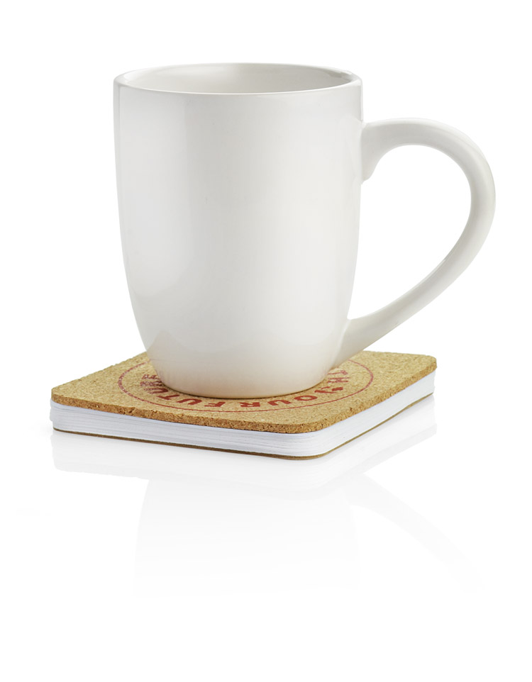 Das Notizbuch mit 60 weißen Blättern kann auch als Untertasse aus Kork verwendet werden. Wir können Ihr Logo auf die Kork- und Kartonfläche drucken.