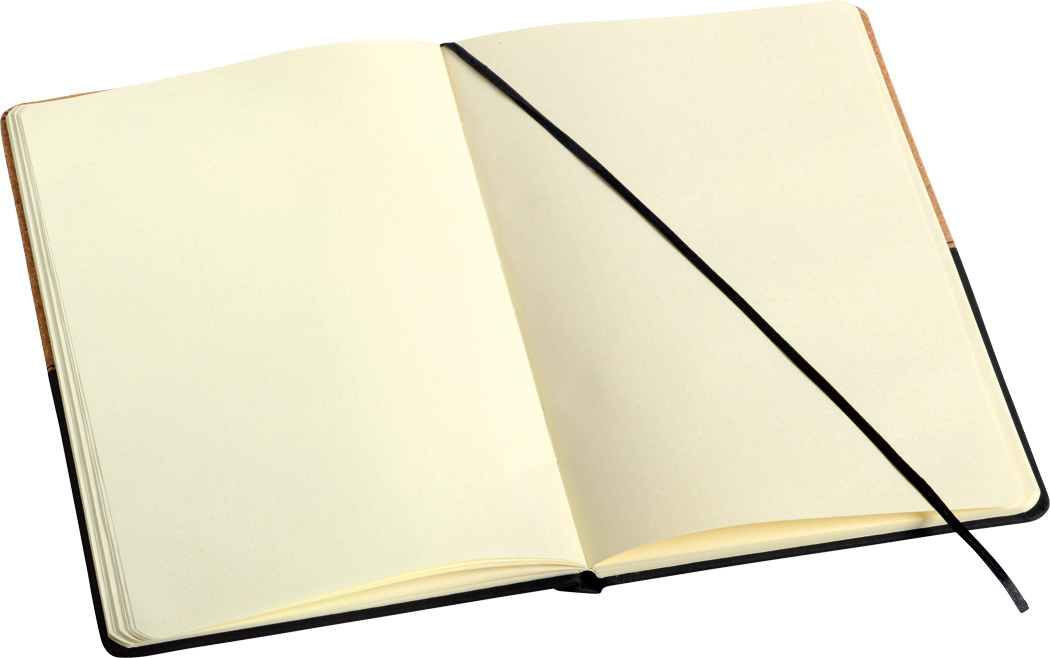 Notizbuch CORKY: im DIN-A5-Format mit abgerundeten Ecken, Gummiband zum Verschließen, mit integriertem Lesezeichen, 80 Blätter, punktkariert, 70 g / m² - Einband aus Kork