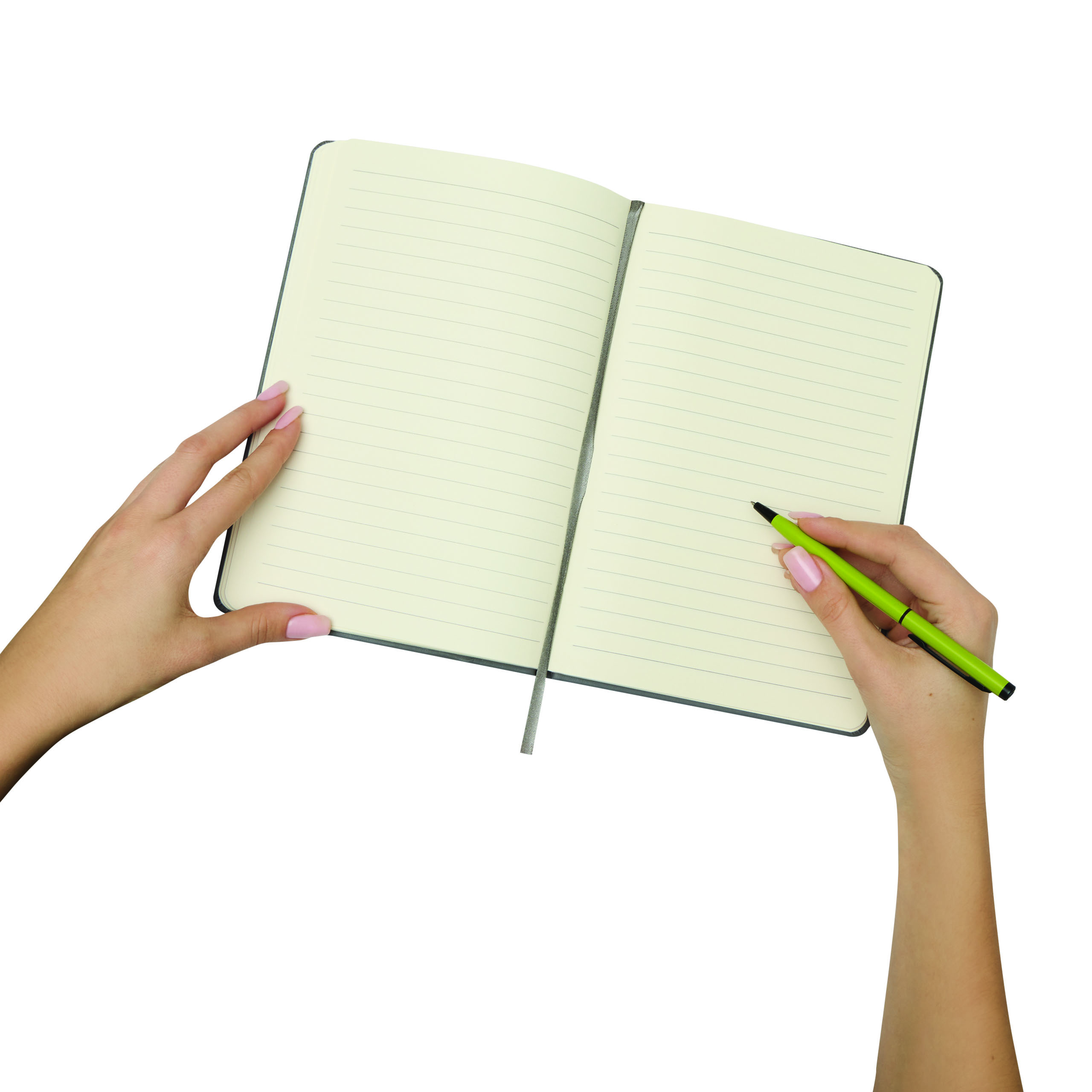 Notizbuch DEPECHE, im DIN-A5-Format: mit abgerundeten Ecken, Gummiband zum Verschließen, mit integriertem Lesezeichen, 80 Blätter, liniert, 70 g / m²