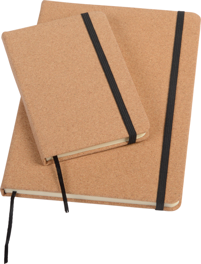 Notizbuch EXECUTIVE: im DIN-A5-Format mit abgerundeten Ecken, Gummiband zum Verschließen, mit integriertem Lesezeichen, 80 Blätter, liniert, 70 g / m² - Einband aus Kork