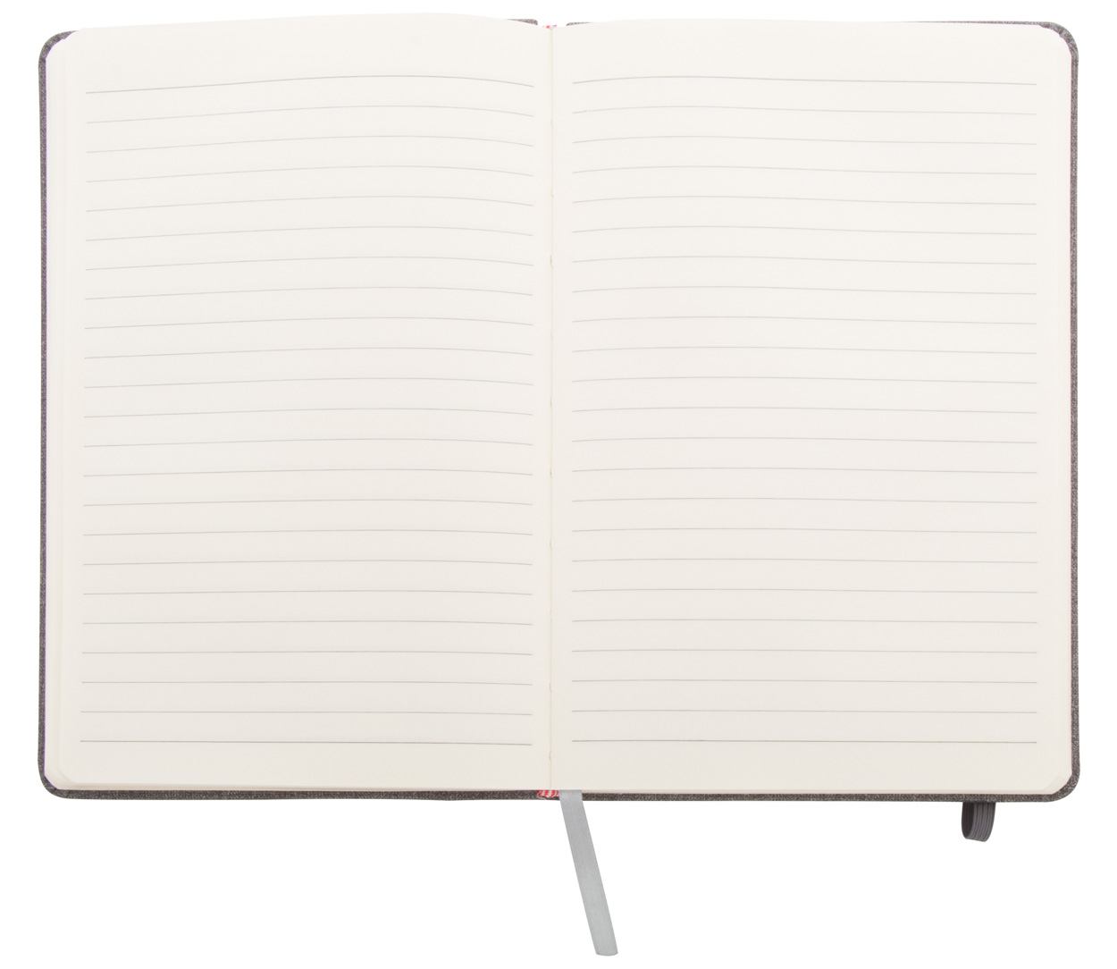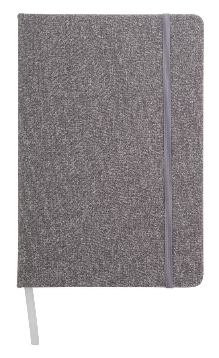 A5 Notizbuch mit strukturiertem Kunstledereinband und Gummiband, 80 Seiten (liniert).