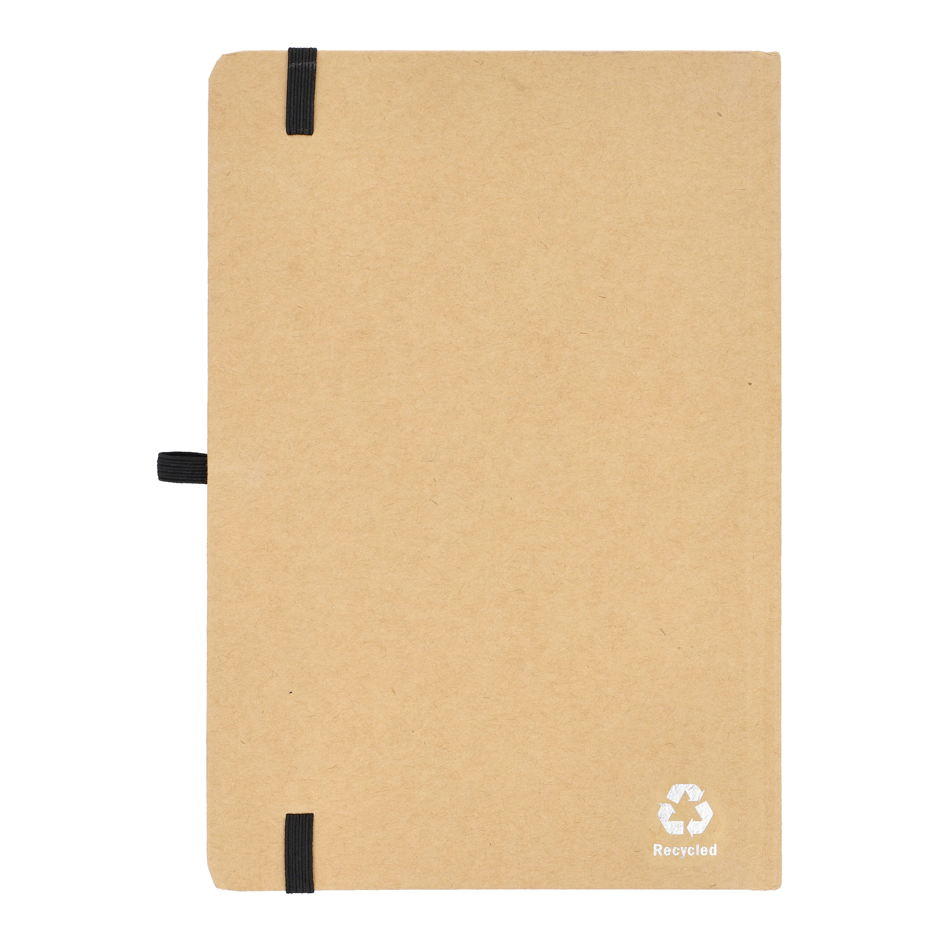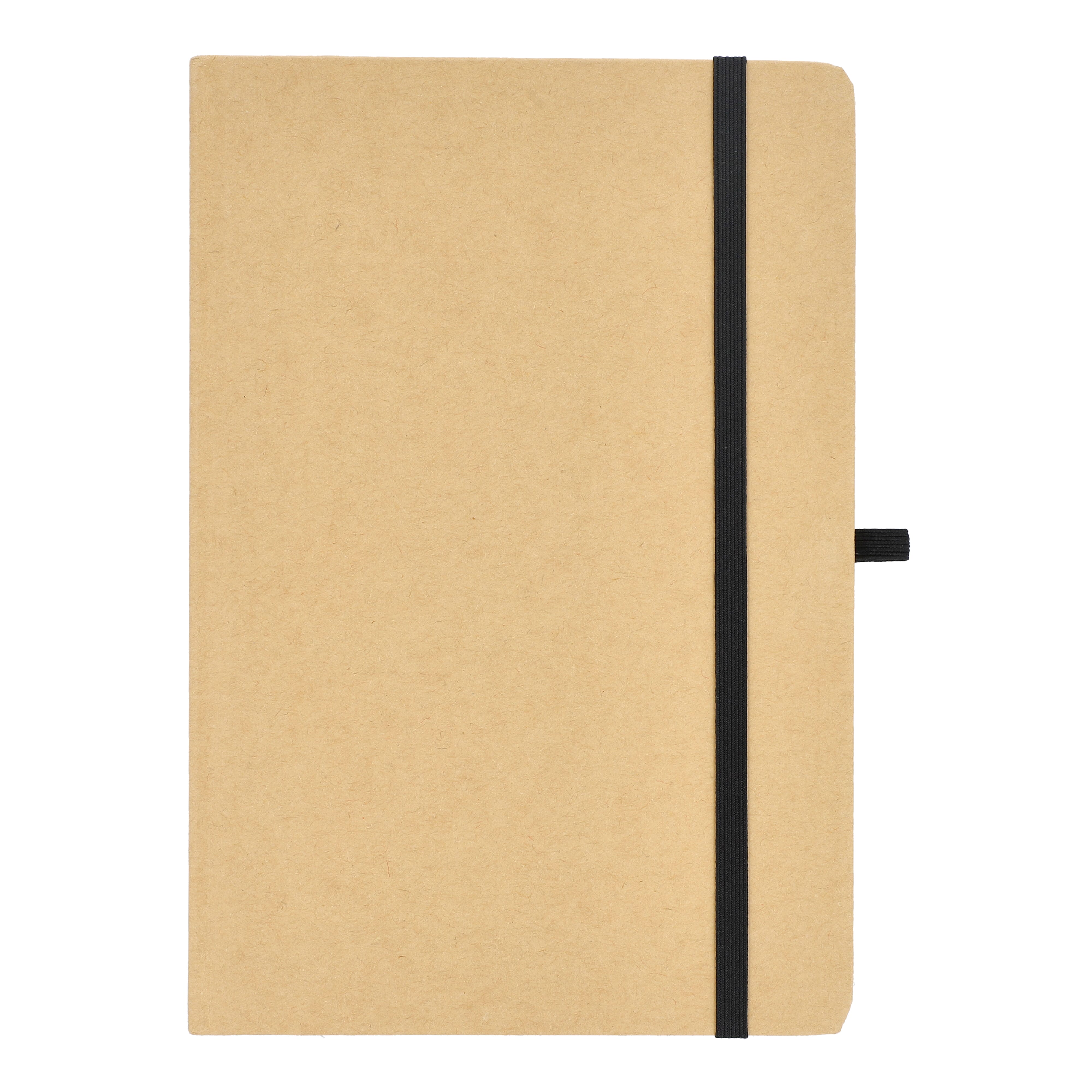 A5-Notizbuch mit Kartoneinband, abgerundeten Ecken, farbigem Gummiverschluss, Lesebändchen und Stiftschlaufe. Enthält 80 linierte cremefarbene Blätter aus Recyclingpapier. Eine praktische, umweltbewusste Wahl für den täglichen Gebrauch.