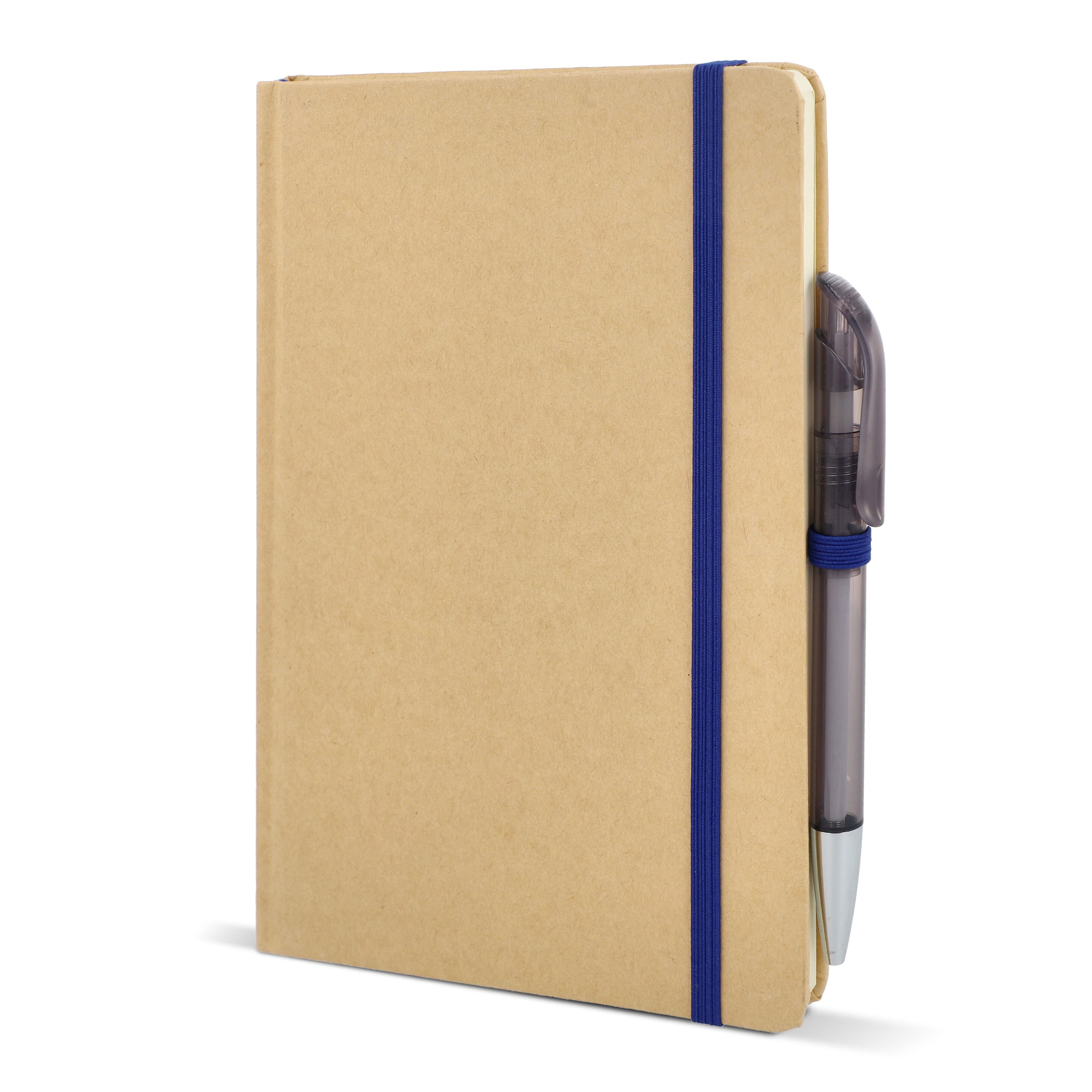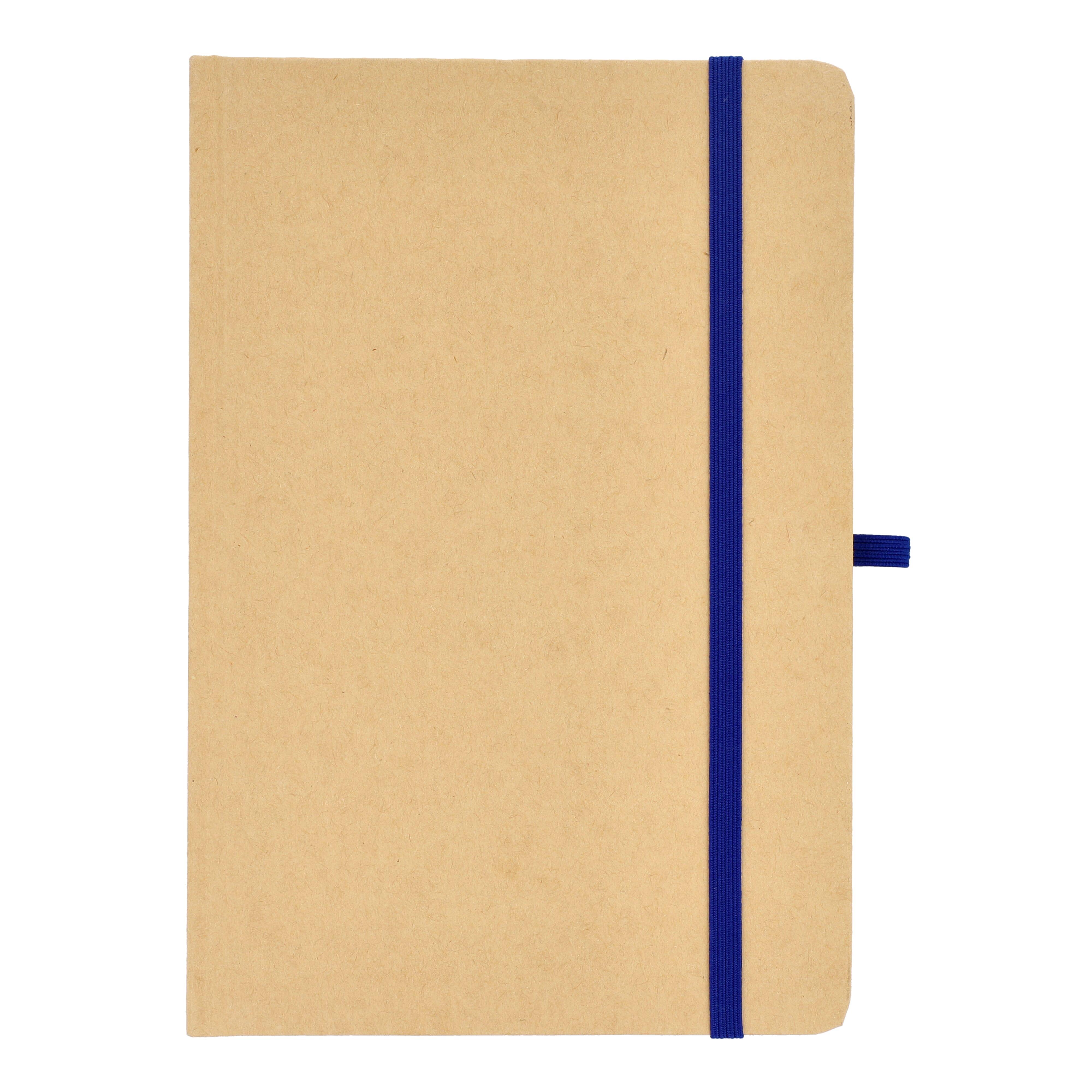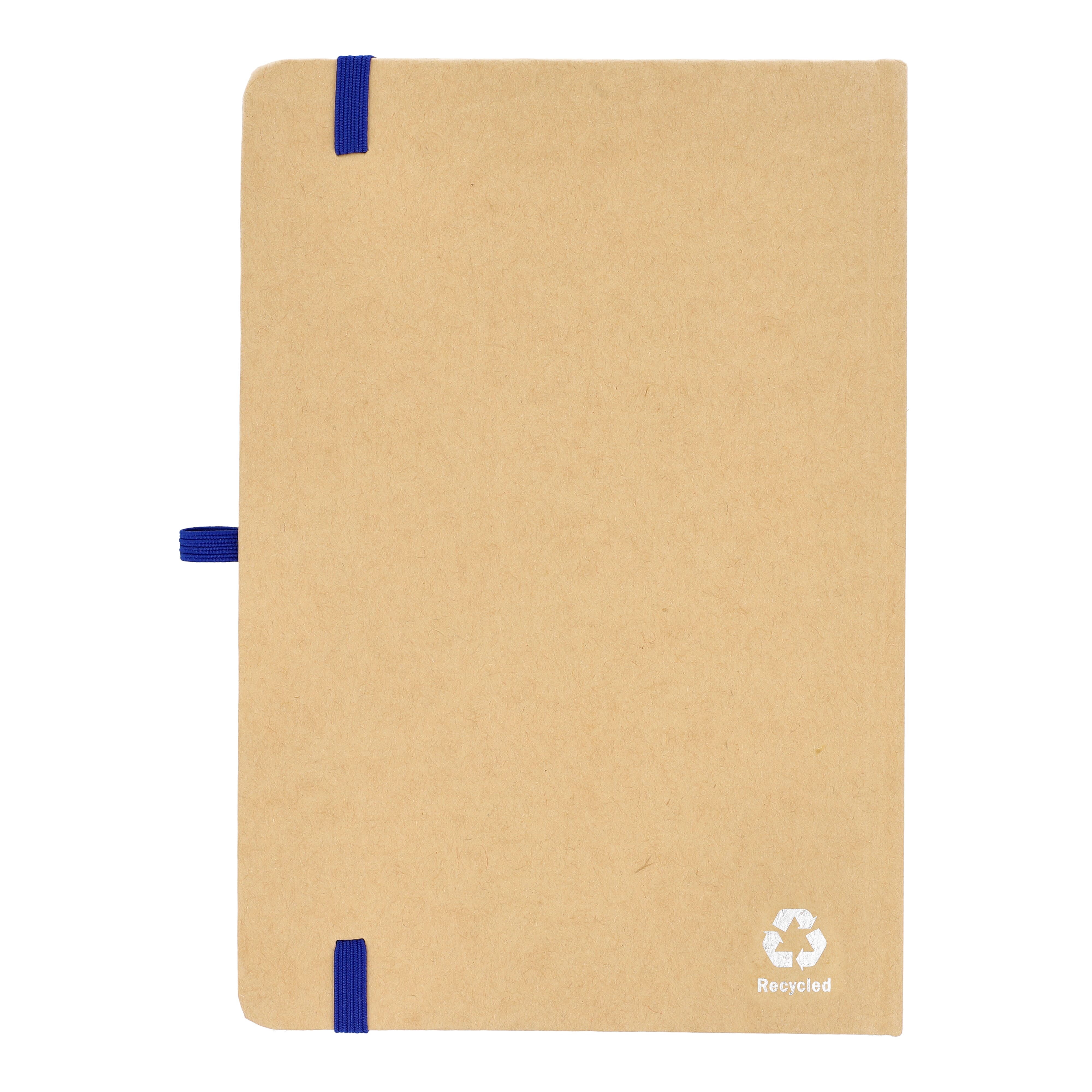 A5-Notizbuch mit Kartoneinband, abgerundeten Ecken, farbigem Gummiverschluss, Lesebändchen und Stiftschlaufe. Enthält 80 linierte cremefarbene Blätter aus Recyclingpapier. Eine praktische, umweltbewusste Wahl für den täglichen Gebrauch.