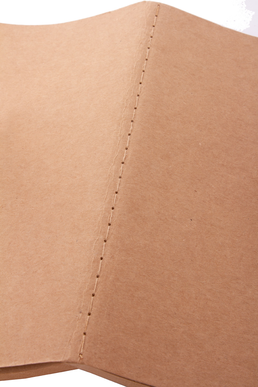 A6 Notizbuch mit genähtem Umschlag aus Recyclingpapier und 60 Blanko-Seiten aus recycletem Kraftpapier.