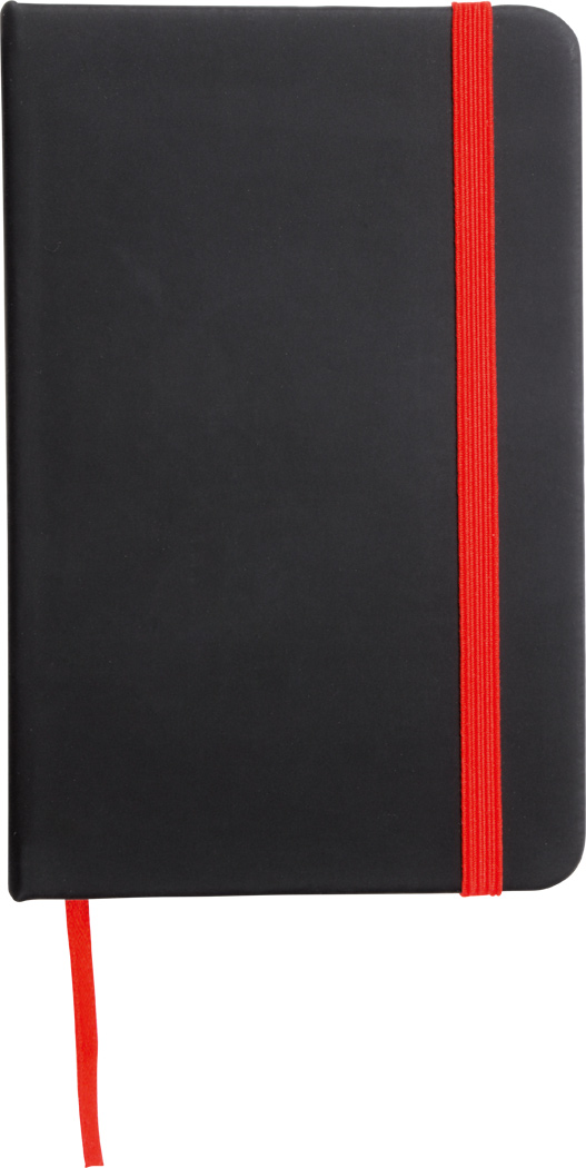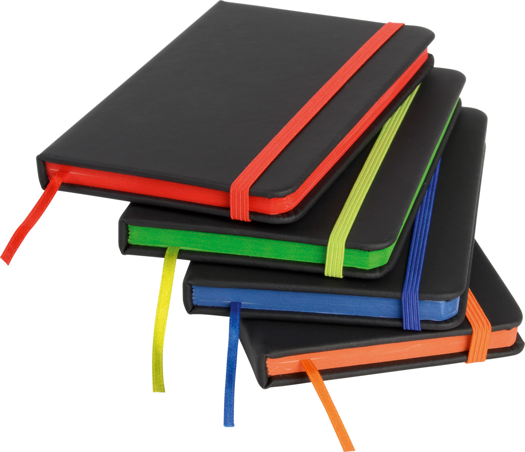 Notizbuch LECTOR im DIN-A6-Format mit abgerundeten Ecken: farbiges Gummiband zum Verschließen und farbige Seitenränder, integriertes Lesezeichen, 80 Blätter, blanko, 70g / m²
