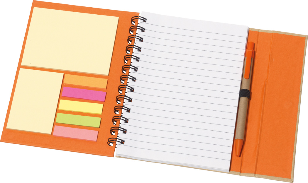 Notizbuch MAGNY: linierter Schreibblock mit Ringlochung, 2 Klebenotizzettelblöcke, 5 verschiedenfarbige Klebenotizstreifen, inkl. Kugelschreiber (schwarzschreibend), magnetischer Verschluss, recycelbar