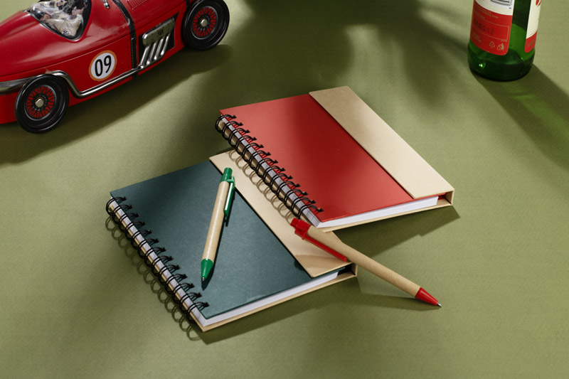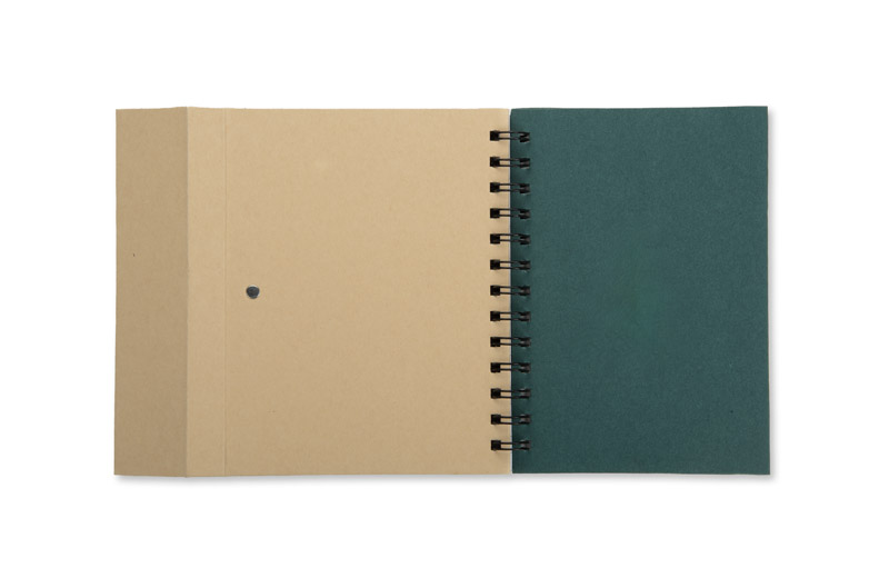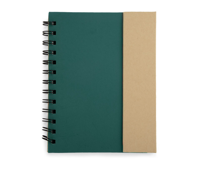 Spiralnotizbuch mit Magnetverschluss. 70 Blatt schwarz-liniert. Haftnotizen 25 Blatt. Inklusive Kugelschreiber. Das Logo wird mit der Tampondruckmethode.