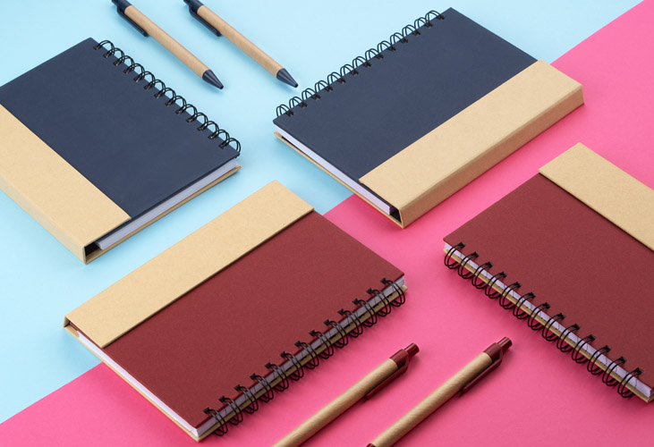 Spiralnotizbuch mit Magnetverschluss. 70 Blatt schwarz-liniert. Haftnotizen 25 Blatt. Inklusive Kugelschreiber. Das Logo wird mit der Tampondruckmethode.