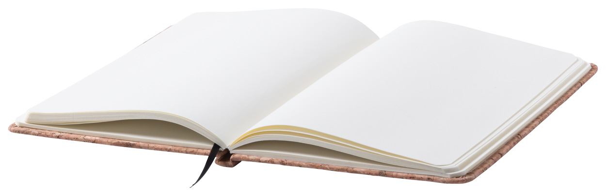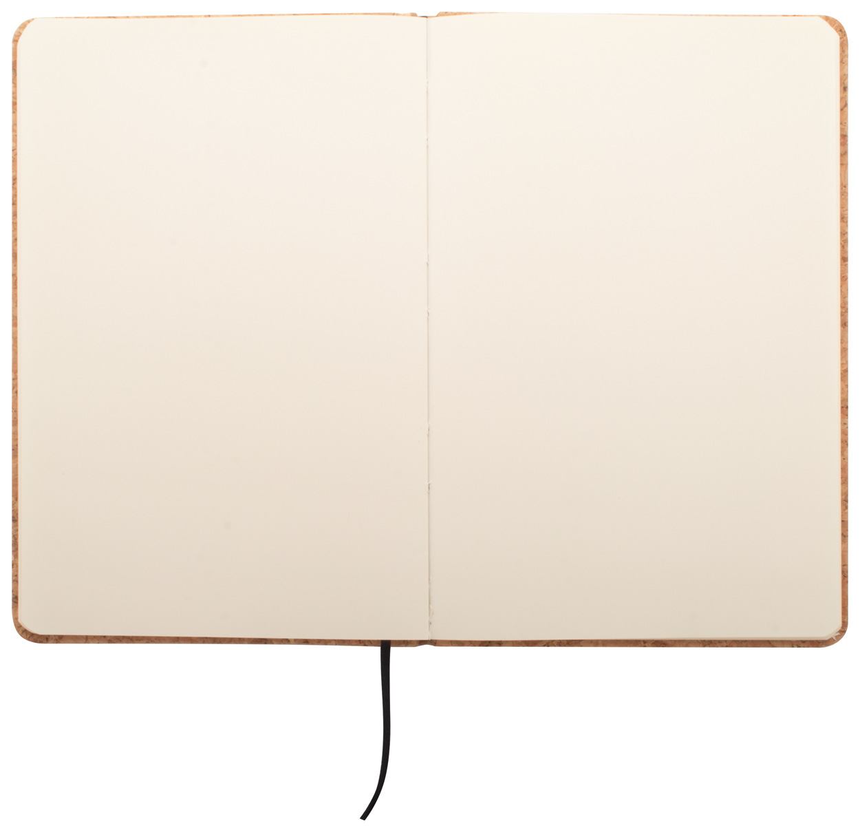 Notizbuch mit Korkeinband, 80 Seiten (blanko) und Gummiband, A5-Format.