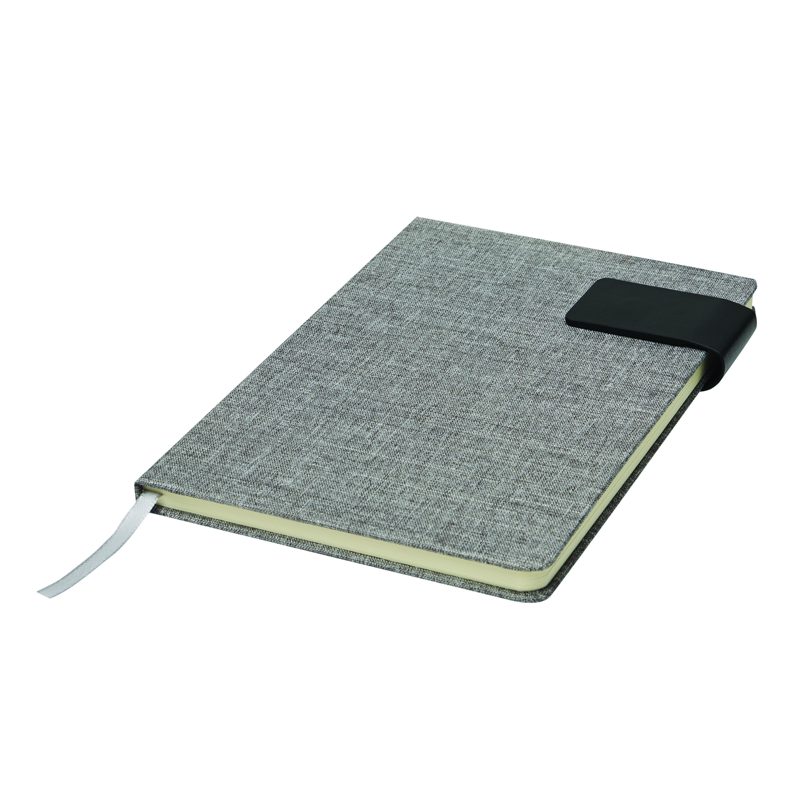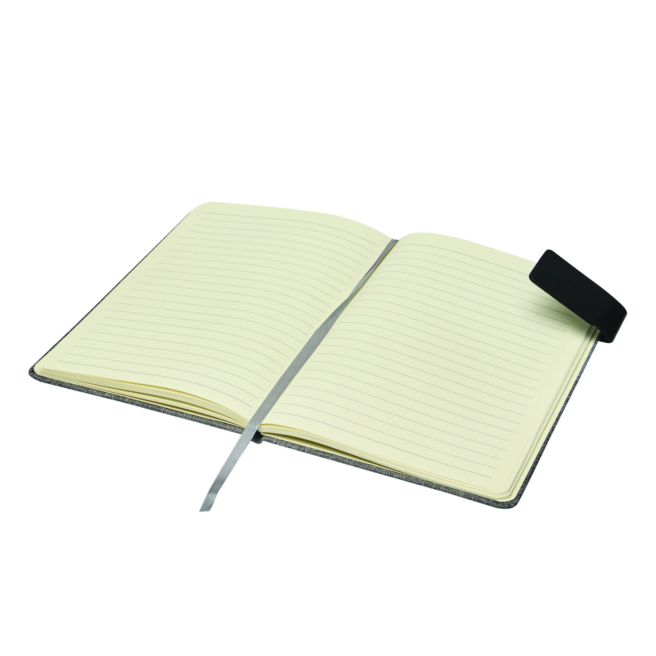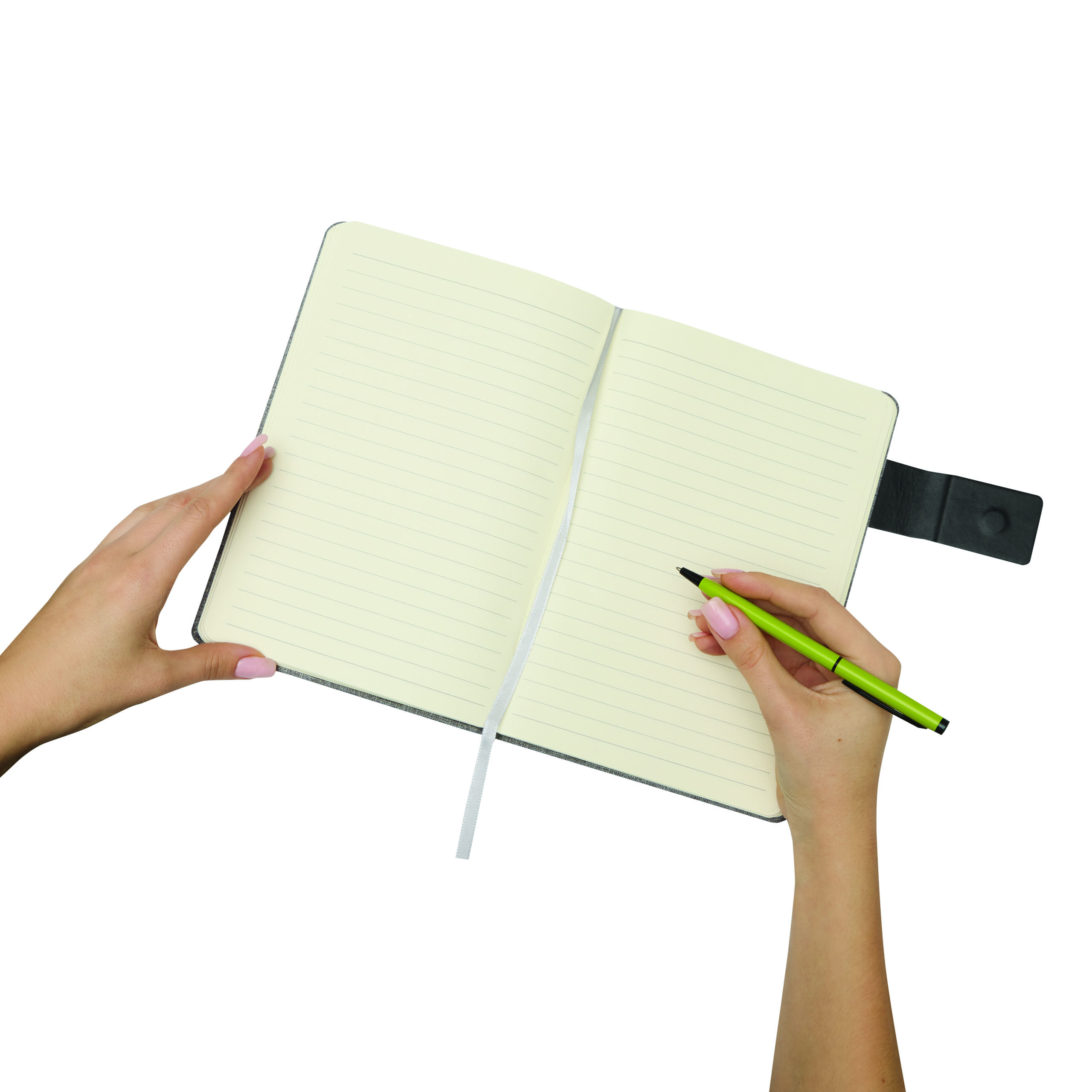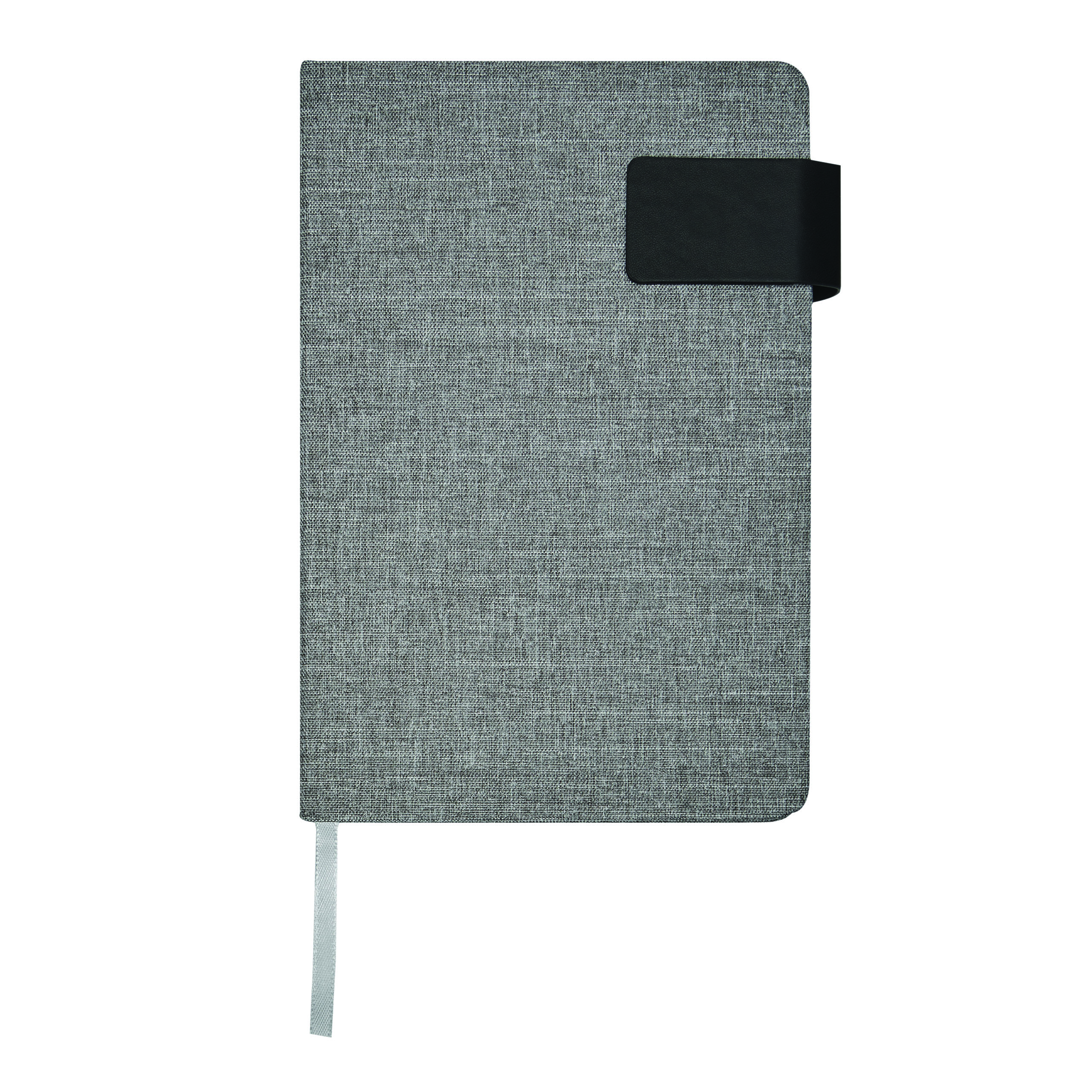 Notizbuch NEWSFLASH, im DIN-A5-Format: mit abgerundeten Ecken, Magnet zum Verschließen, mit integriertem Lesezeichen, Einband aus recyceltem Polyester (RPET), 80 Blätter, liniert, 70/m²