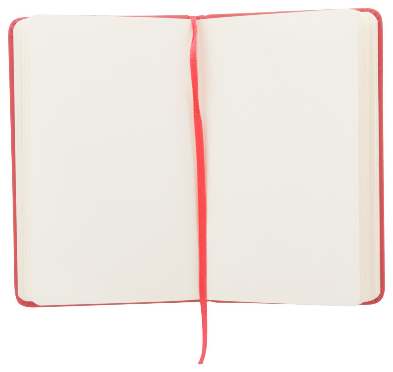 Notizbuch mit Kunstleder-Einband, 100 Seiten (blanko), Lesezeichen und Gummiband. A6-Größe.