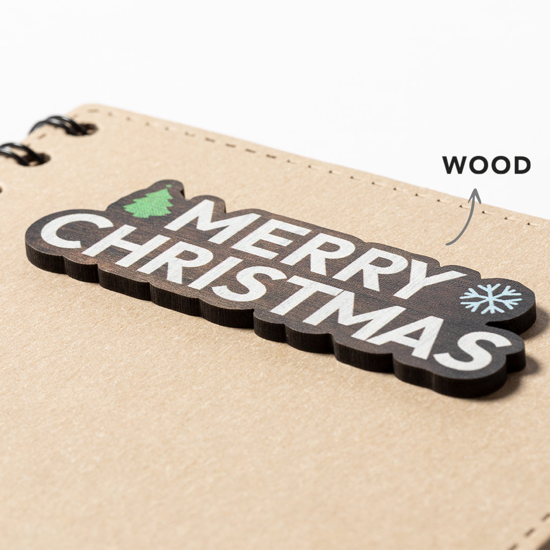 Ringbuch der Linie Natur, Weihnachtsmotiv. Mit hartem Einband aus recyceltem Karton und echtem Gummiverschluss. Inklusive 80 Blatt mit gestreiftem Layout und Öko-Design.