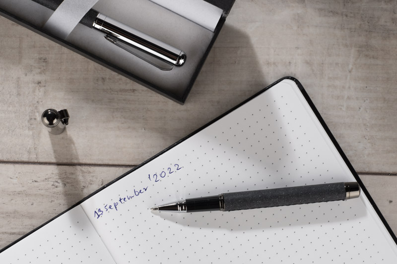 Ein elegantes Notizbuch mit Hartumschlag, festem Einband und dekorativer Vergoldung. Die Blätter des Notizbuchs sind aus Steinpapier. Dieses Papier ist extrem reißfest und feuchtigkeitsbeständig. Es hat 80 gepunktete Blätter. Format A5.