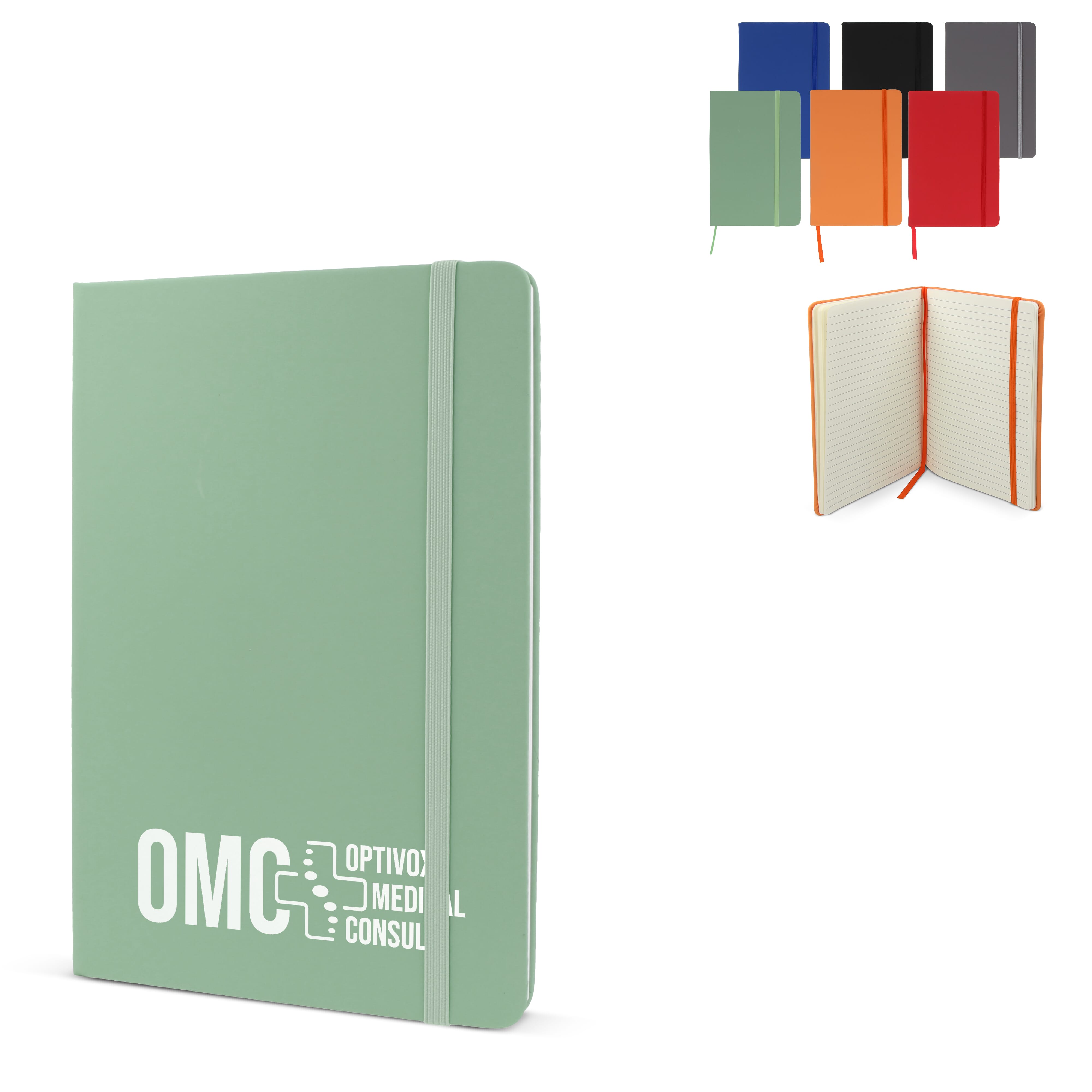 Wir präsentieren unser A5-Notizbuch mit FSC-Seiten! Hergestellt aus recycelten R-PET / PU-Materialien und versehen mit einem robusten Einband in edler Ausführung. Innen bieten linierte FSC-zertifizierte Seiten viel Platz für Ideen, Notizen und Pläne – ein verlässlicher Begleiter für Arbeit, Studium oder tägliche Organisation.