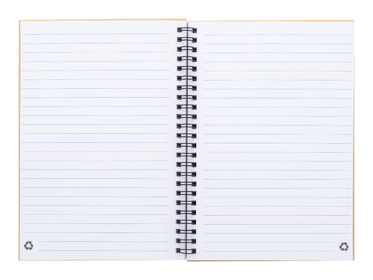 Spiralnotizbuch mit 80 linierten Blättern aus Recyclingpapier. Format A5.