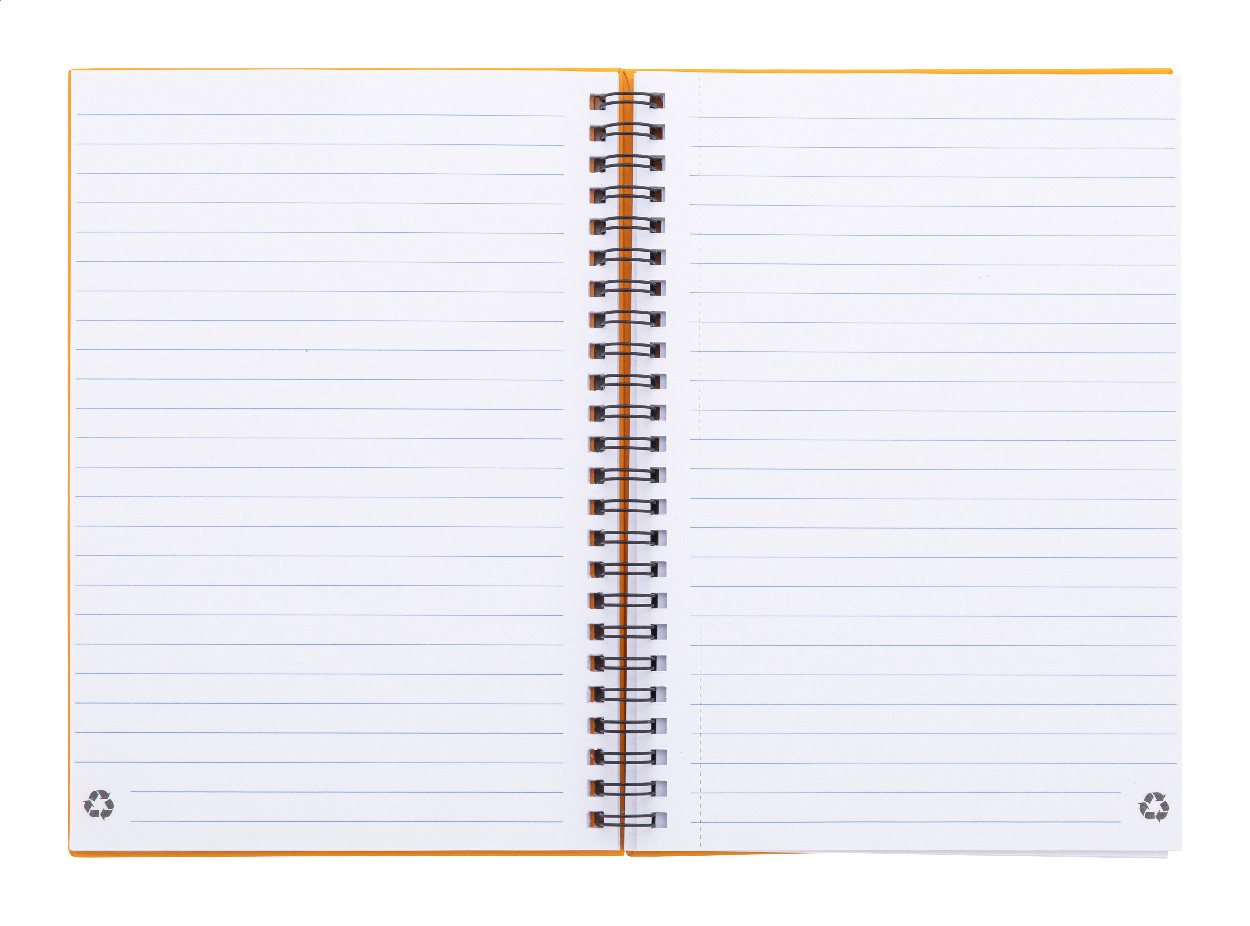 Spiralnotizbuch mit 80 linierten Blättern aus Recyclingpapier. Format A5.