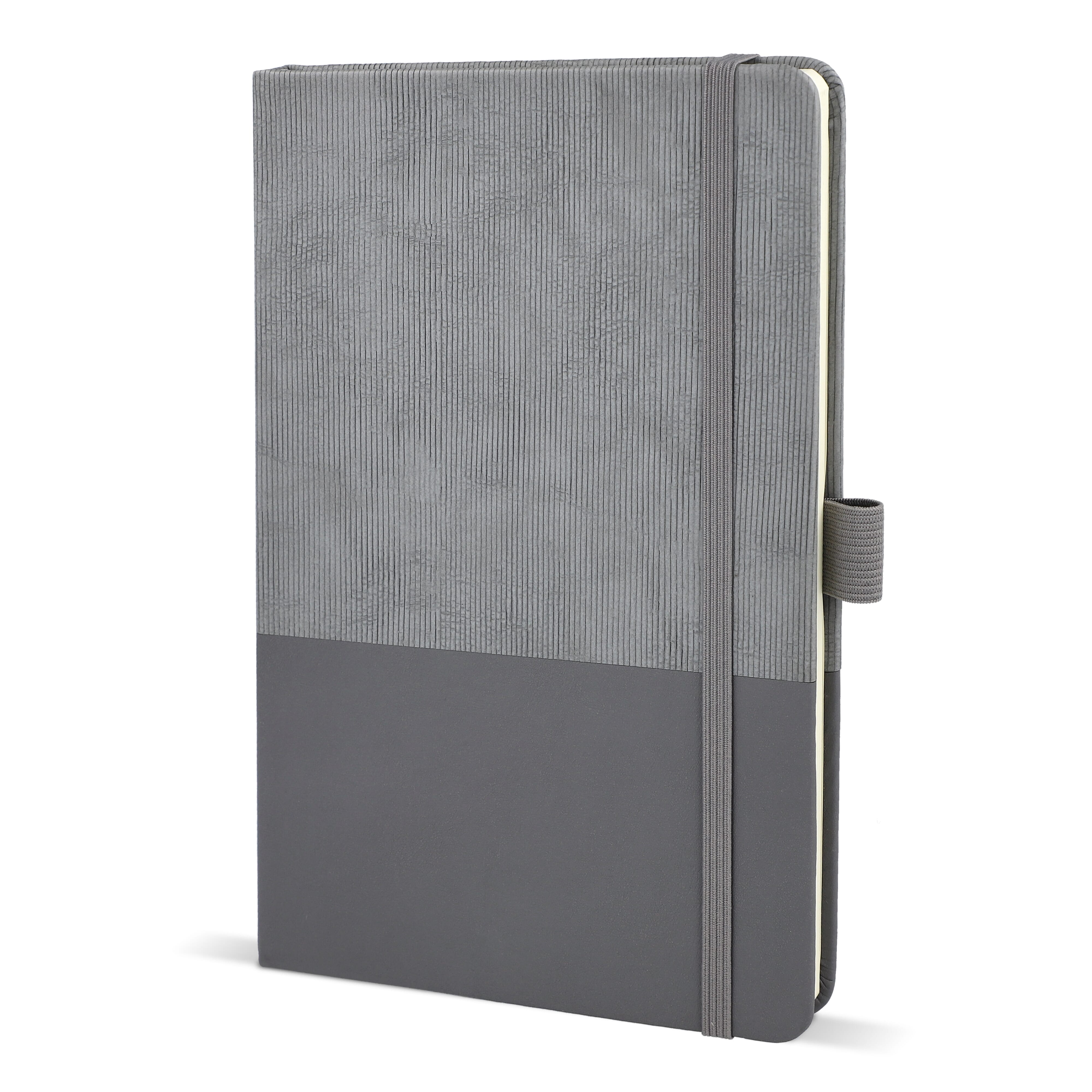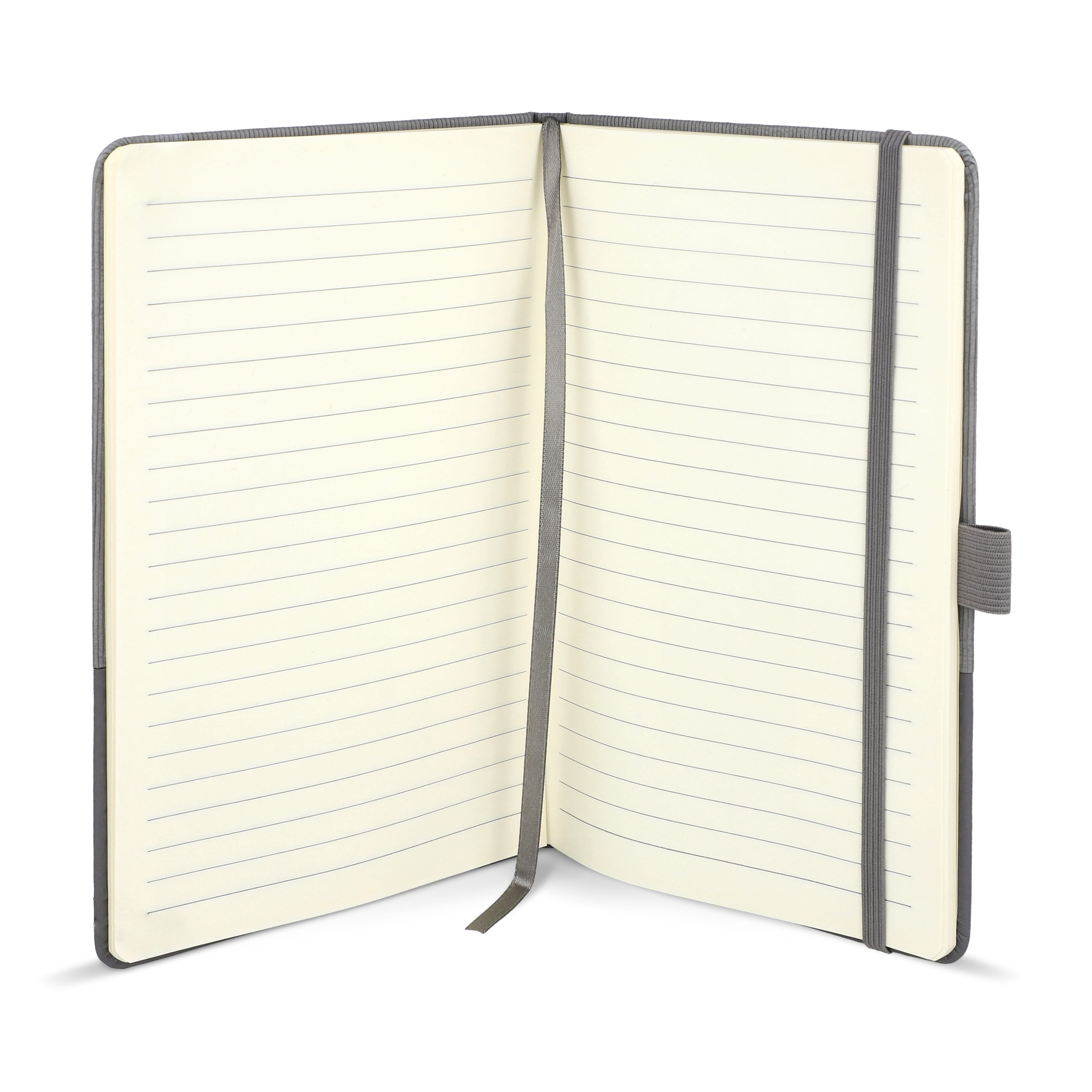 A5-Notizbuch aus Thermo-PU-Kunstleder mit modernem, hochwertigem Look. Ausgestattet mit einem elastischen Verschlussband, Lesebändchen und Stiftschlaufe. Es hat 80 linierte, cremefarbene Blätter aus FSC-zertifiziertem Papier.