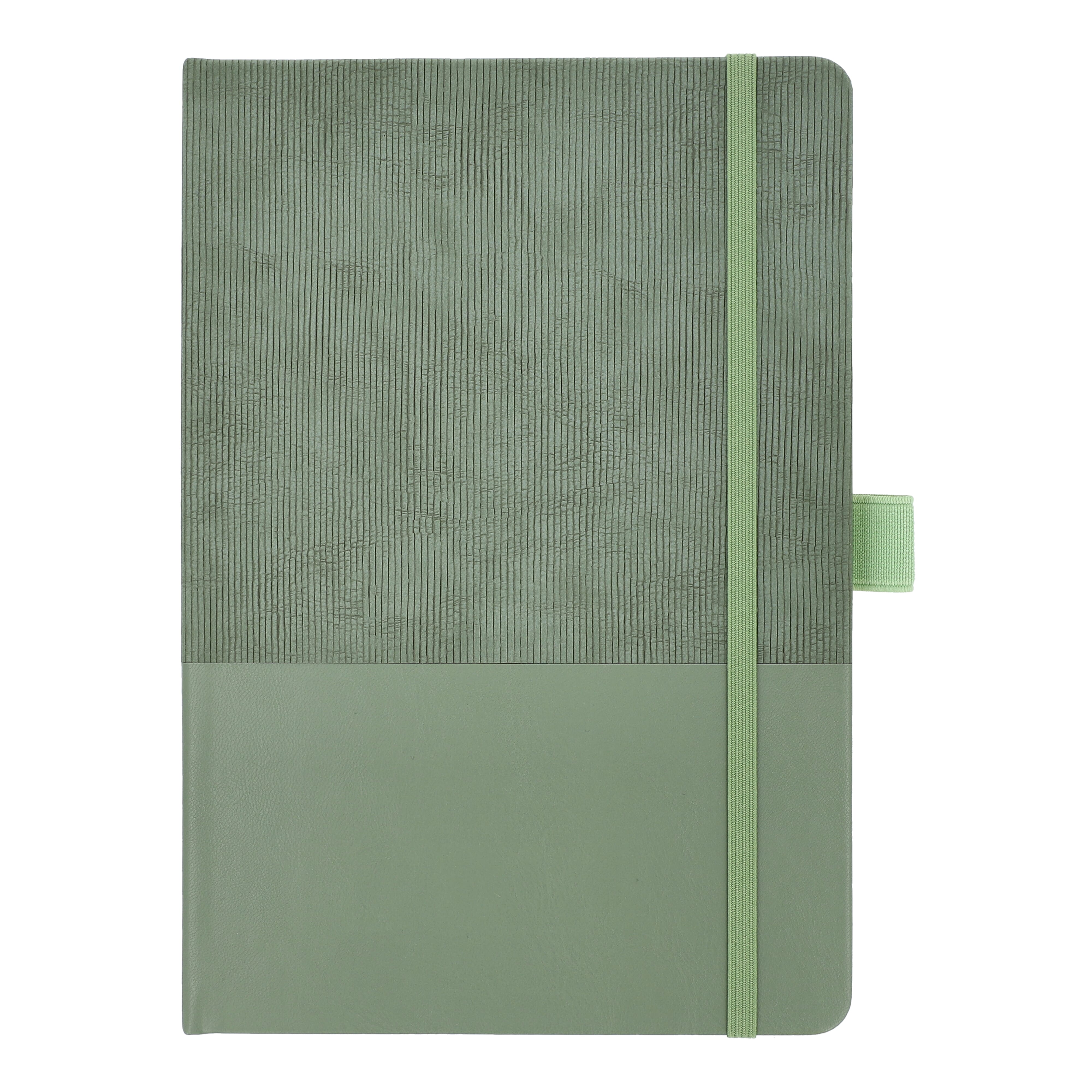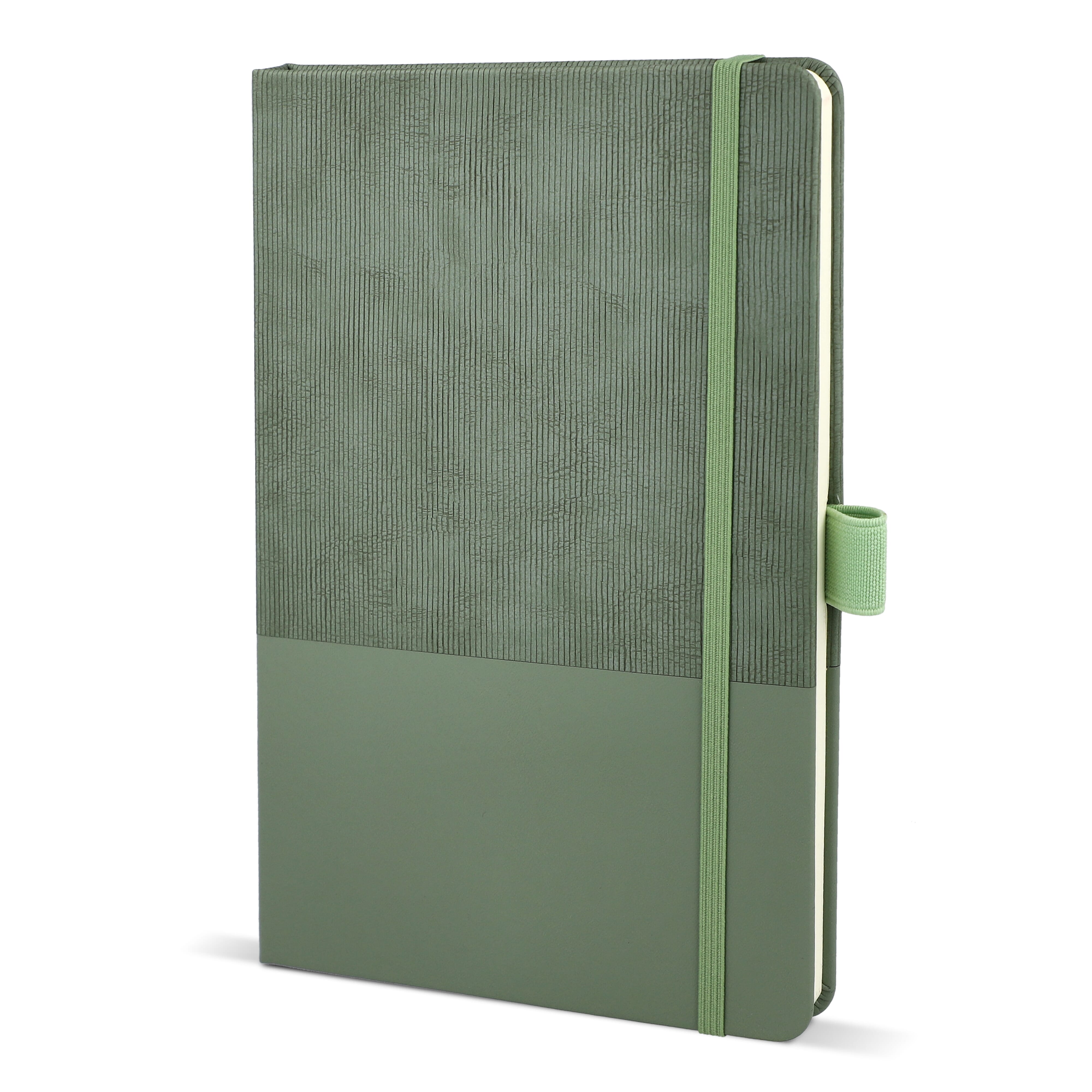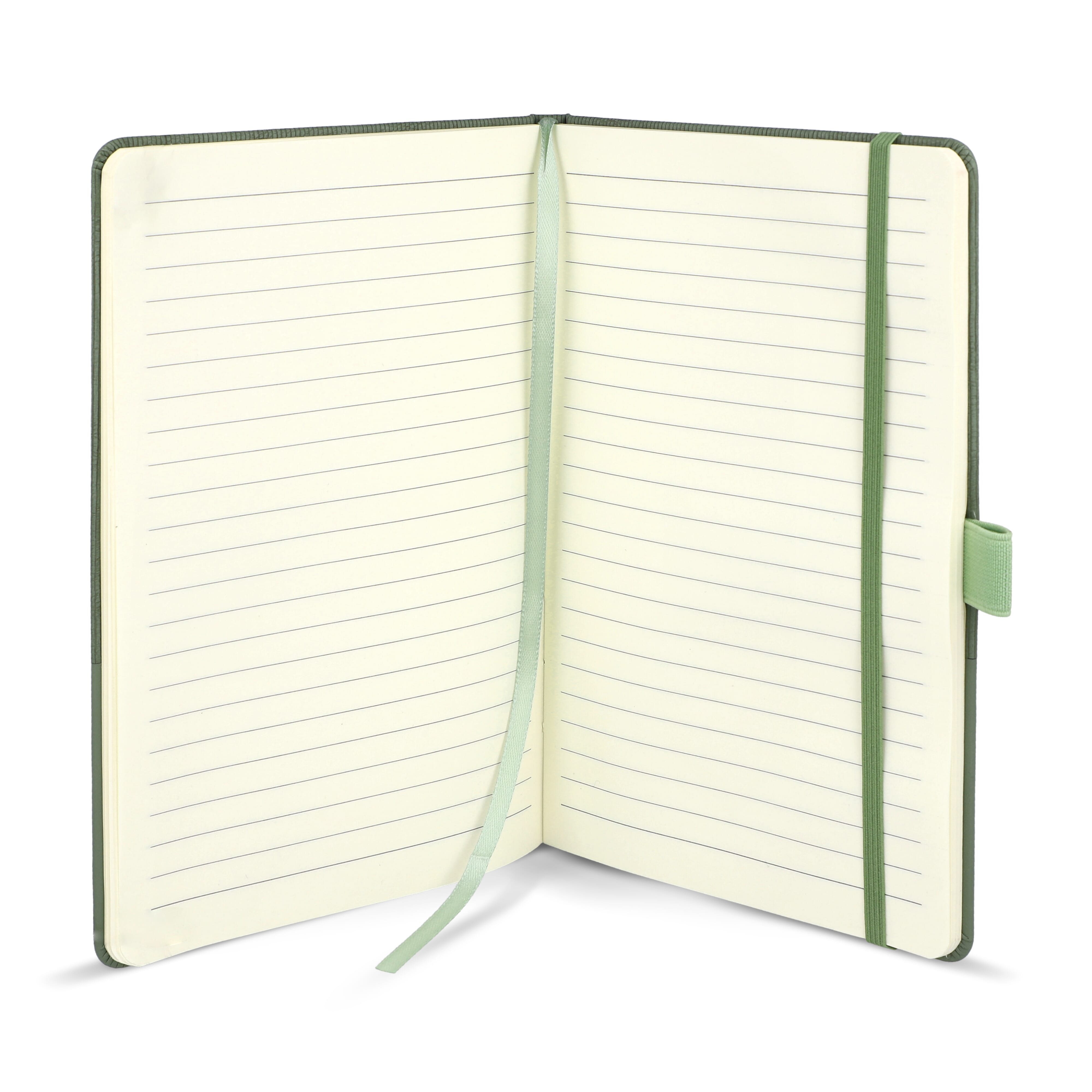 A5-Notizbuch aus Thermo-PU-Kunstleder mit modernem, hochwertigem Look. Ausgestattet mit einem elastischen Verschlussband, Lesebändchen und Stiftschlaufe. Es hat 80 linierte, cremefarbene Blätter aus FSC-zertifiziertem Papier.