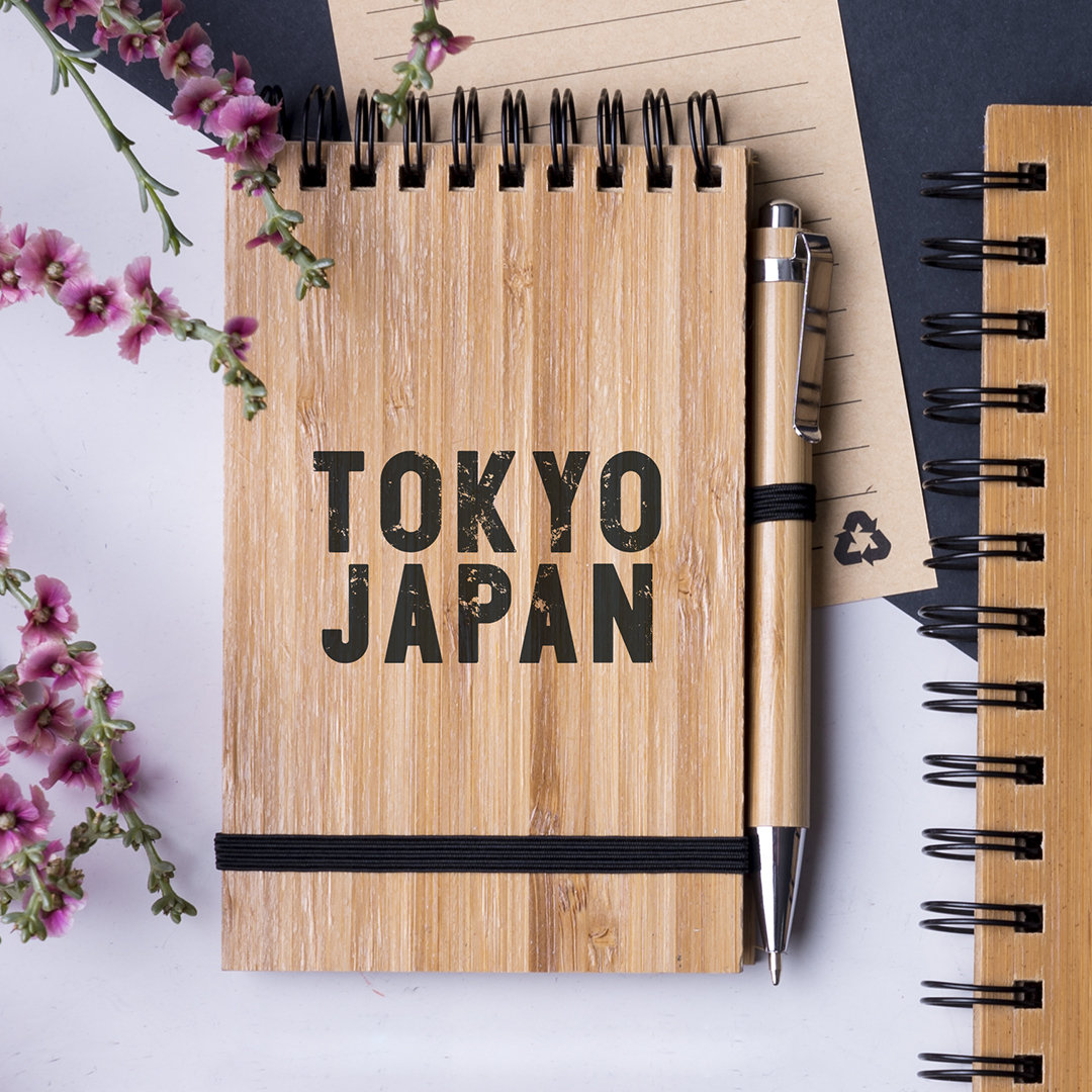 Bambus-Notizbuch und Infinity-Bleistift im Set