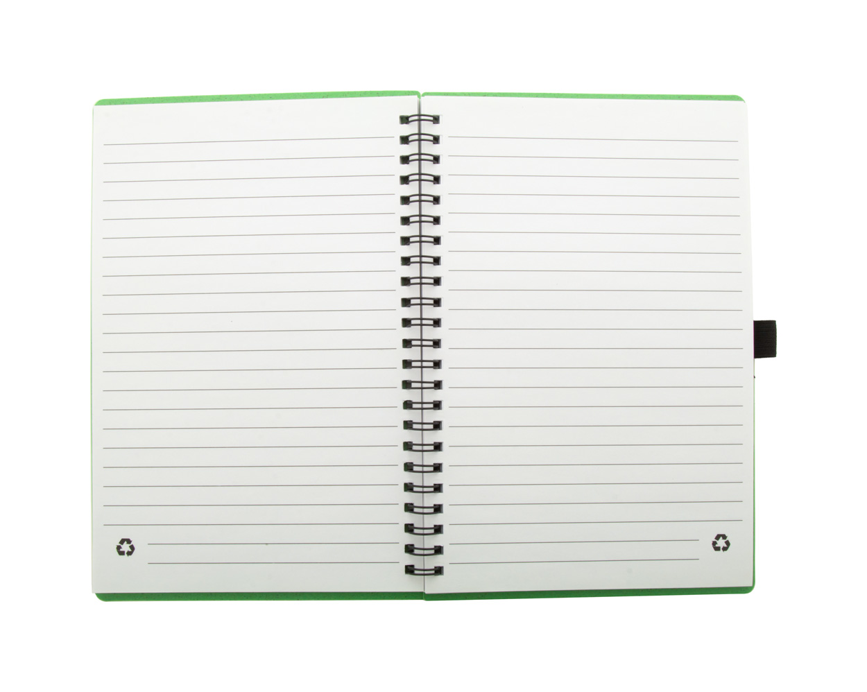Ökologisches Spiral-Notizbuch mit Weizenstroh-Kunststoffüberzug, 70 linierten Blättern aus Recyclingpapier und Stifthalter im A5-Format.