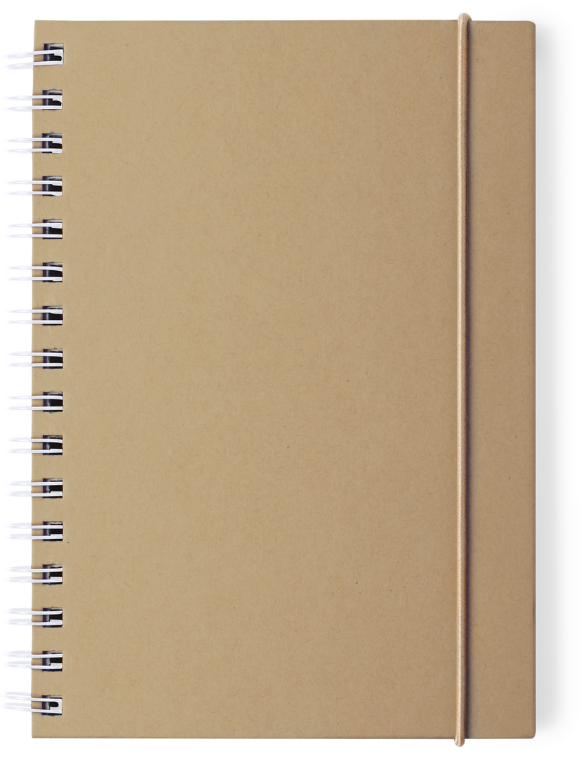 Ringnotizbuch aus unserer Naturlinie mit farbigen Ringen. Harte Einbände aus recyceltem Karton und einem Gummiband in Naturfarben. Mit 80 Blättern im Streifen-Layout und Öko-Design.